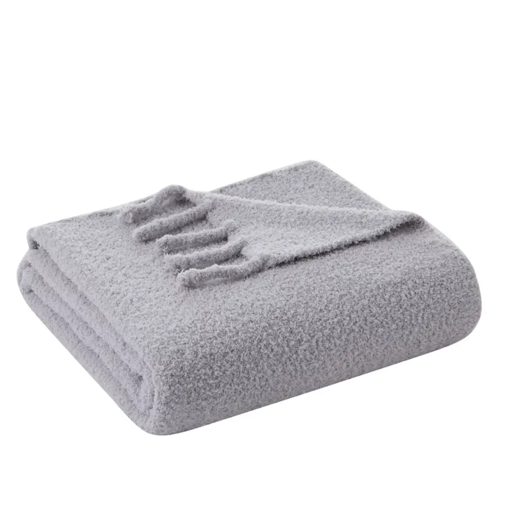 Kate Aurora Ultra Soft & Plush Miranda Gray Fringed Accent Throw Blanket - 50 In. W X 60 In. L