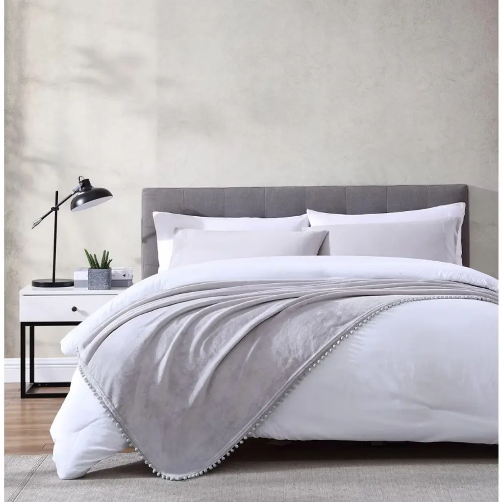 Kate Aurora Ultra Soft & Premium Plush Oversized Pom Pom Accent Fleece Throw Blanket - 50 In. W X 70 In. L - Silver