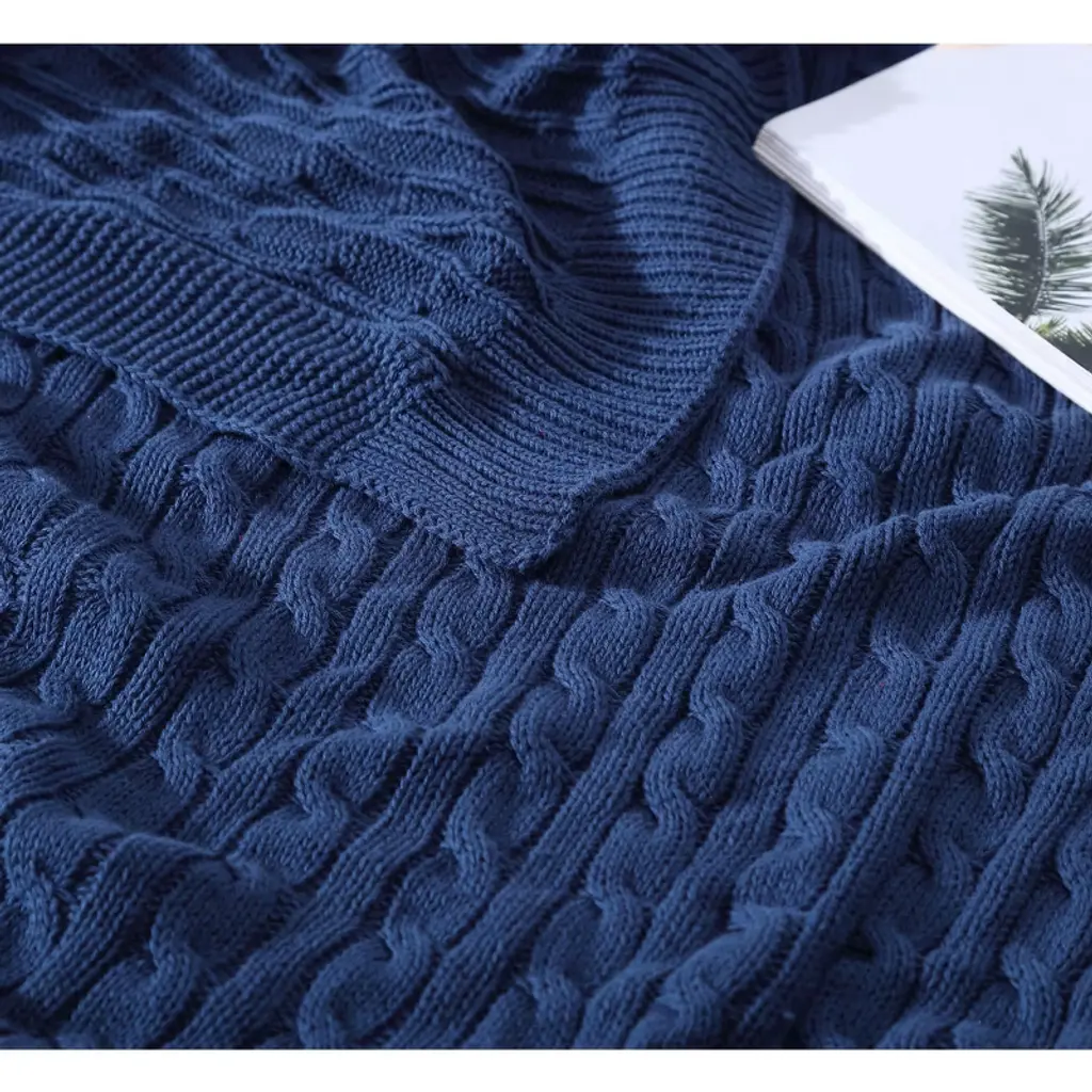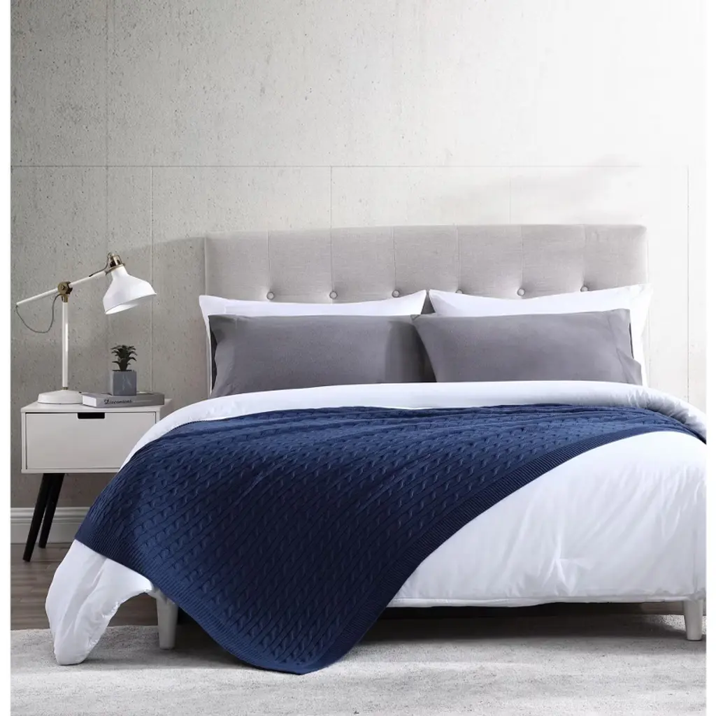 Kate Aurora University Living® Ultra Soft & Plush Oversized "The Scholar" Cable Knit Cotton Accent Throw Blanket - Navy