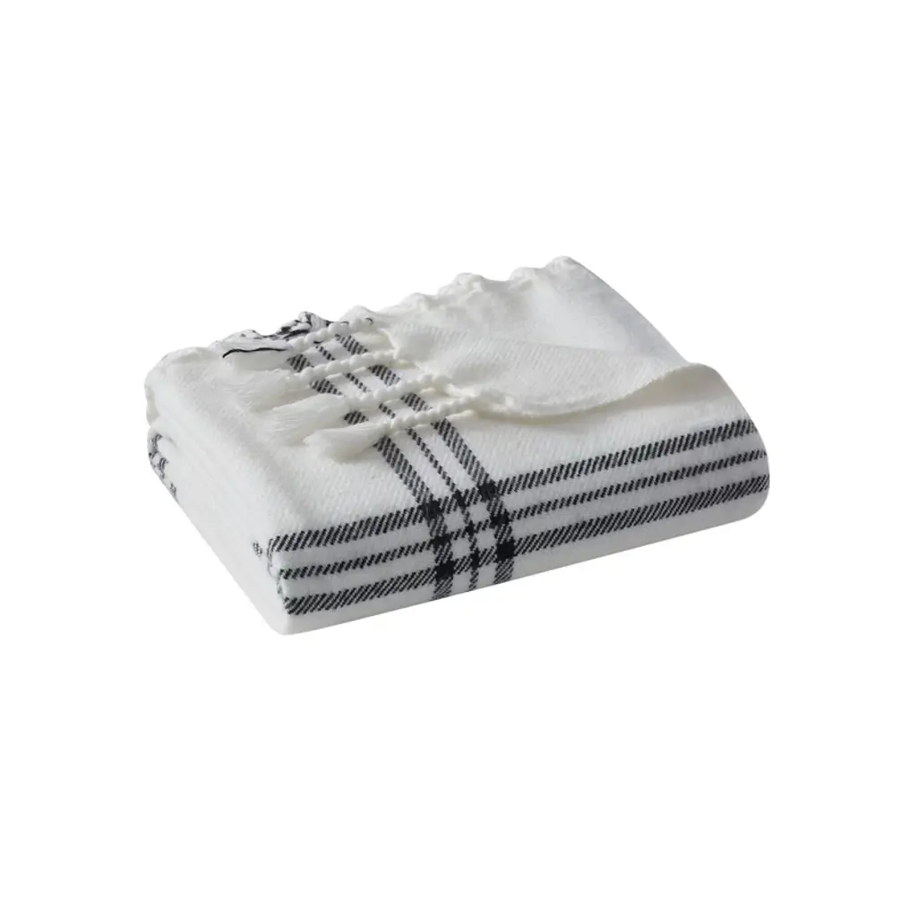 Kate Aurora Woodland Plaid Fringed Accent Throw Blanket - 50 In. X 60 In. - White/black