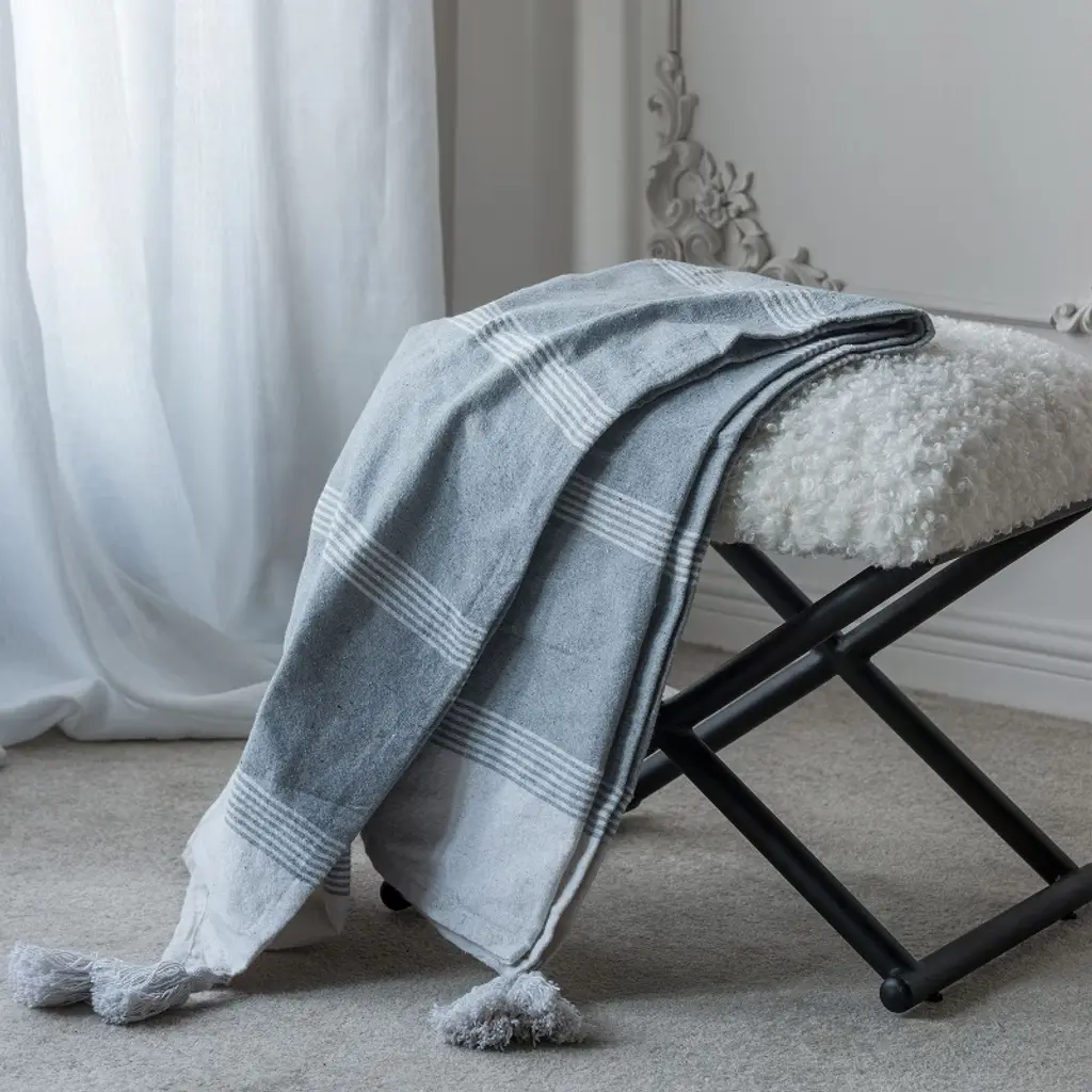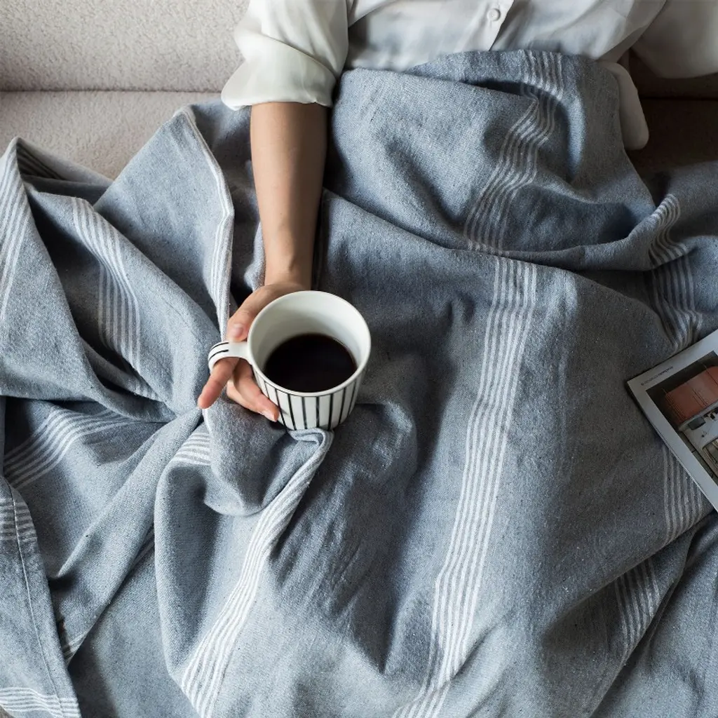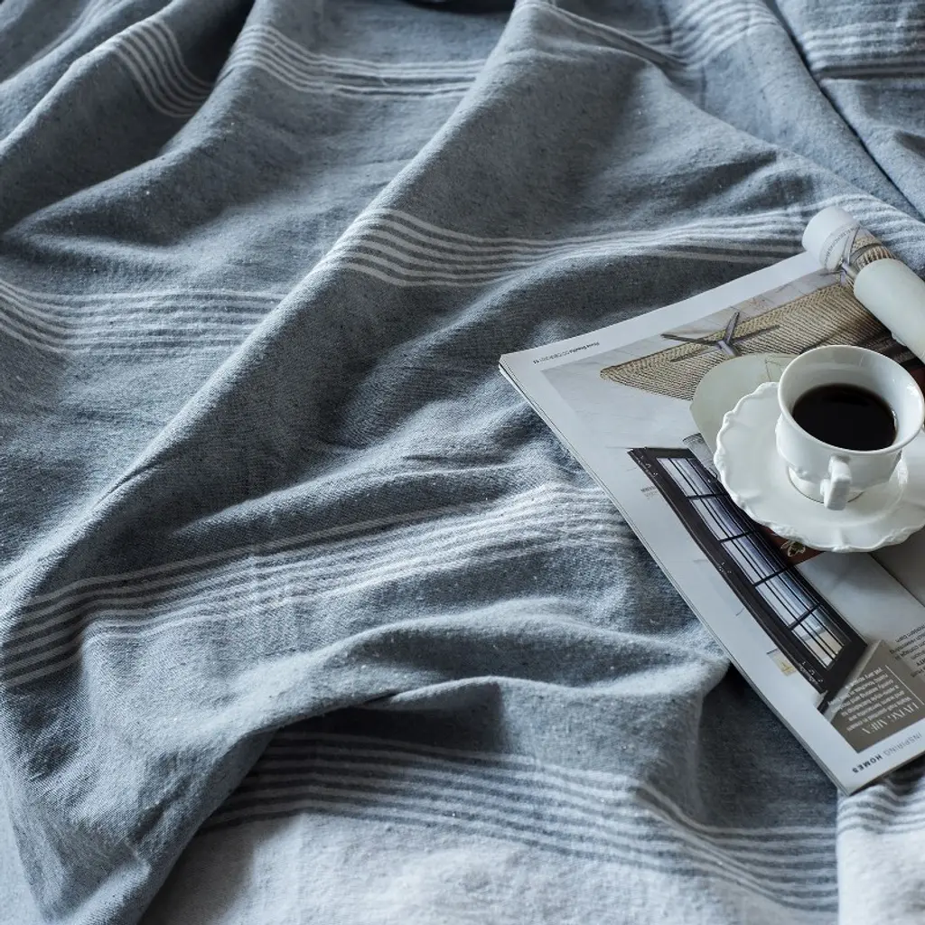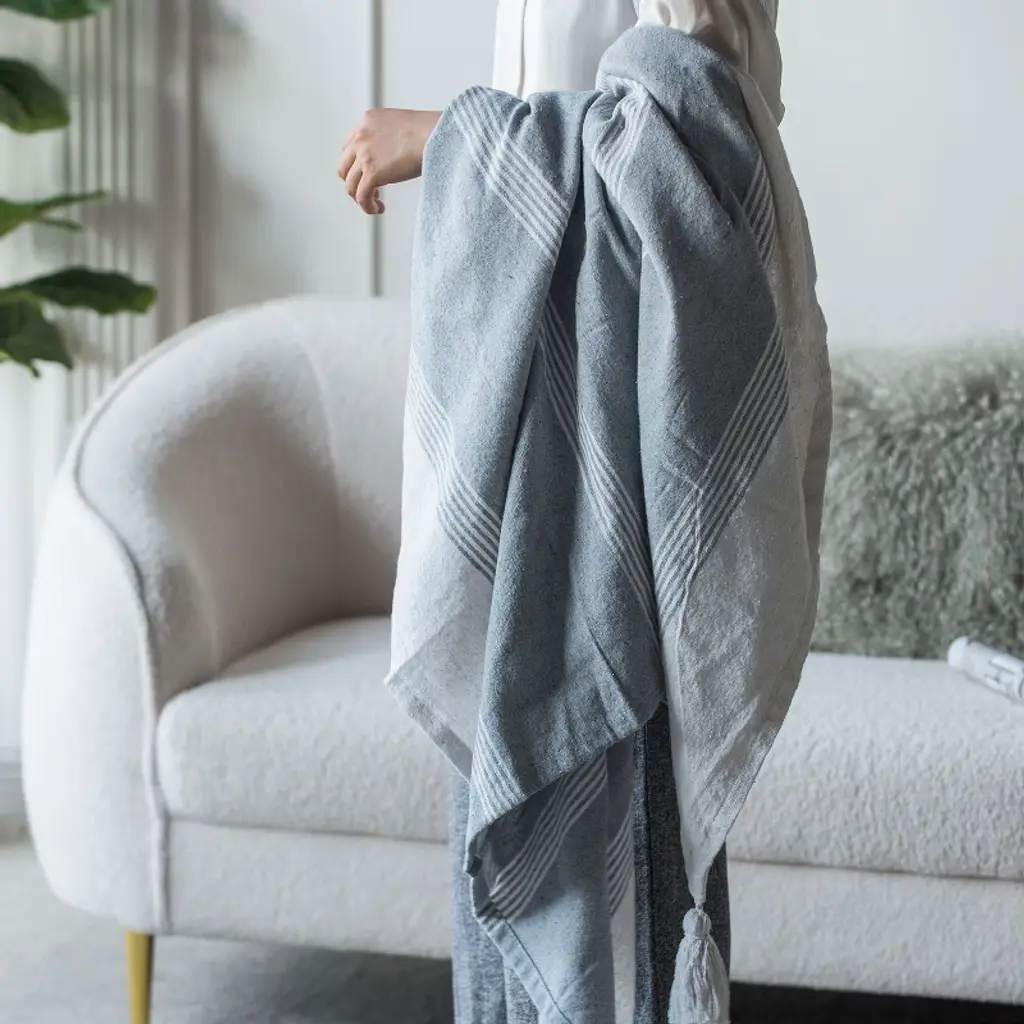 Ktmbdw Striped Collection Cotton Throw Blanket, 50x60, Gray&white