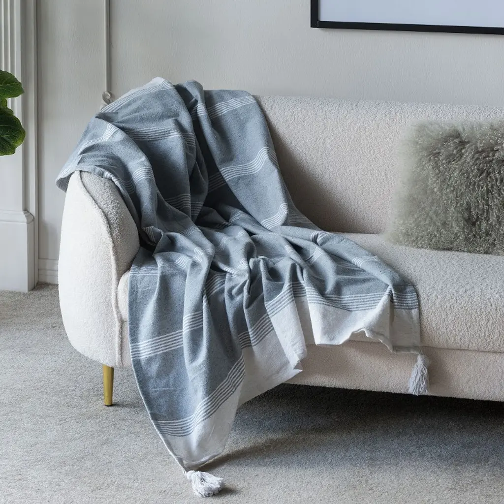 Throw measures 50 x 60", 100% Cotton,A classic style with a modern twist, use year round to provide warmth or style to your space,Elevate your home with patterns and woven textures within your living space, spread over a couch or chair.