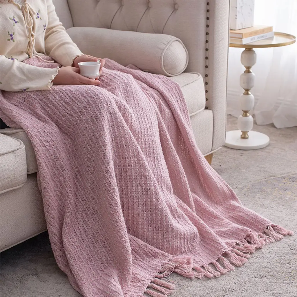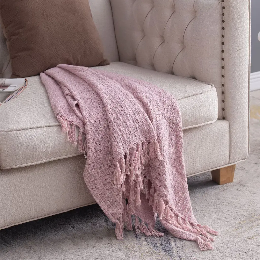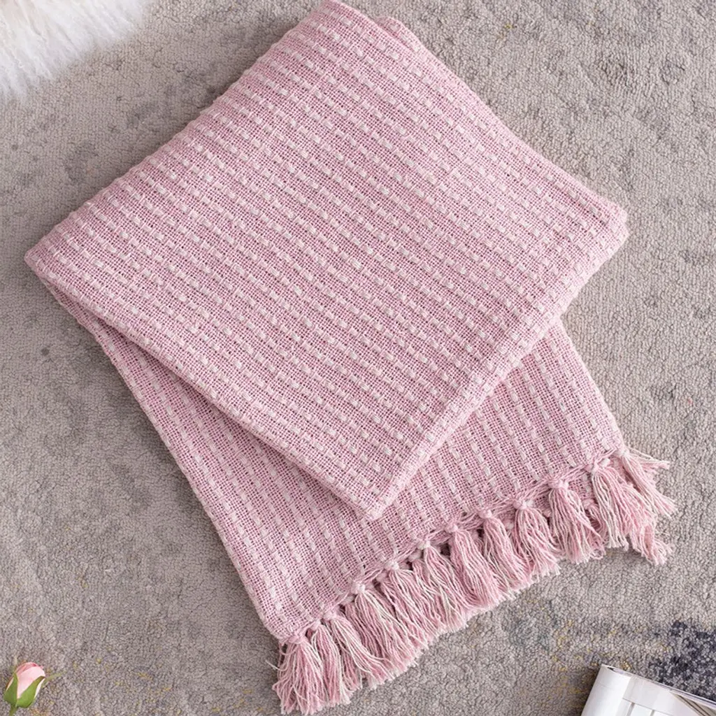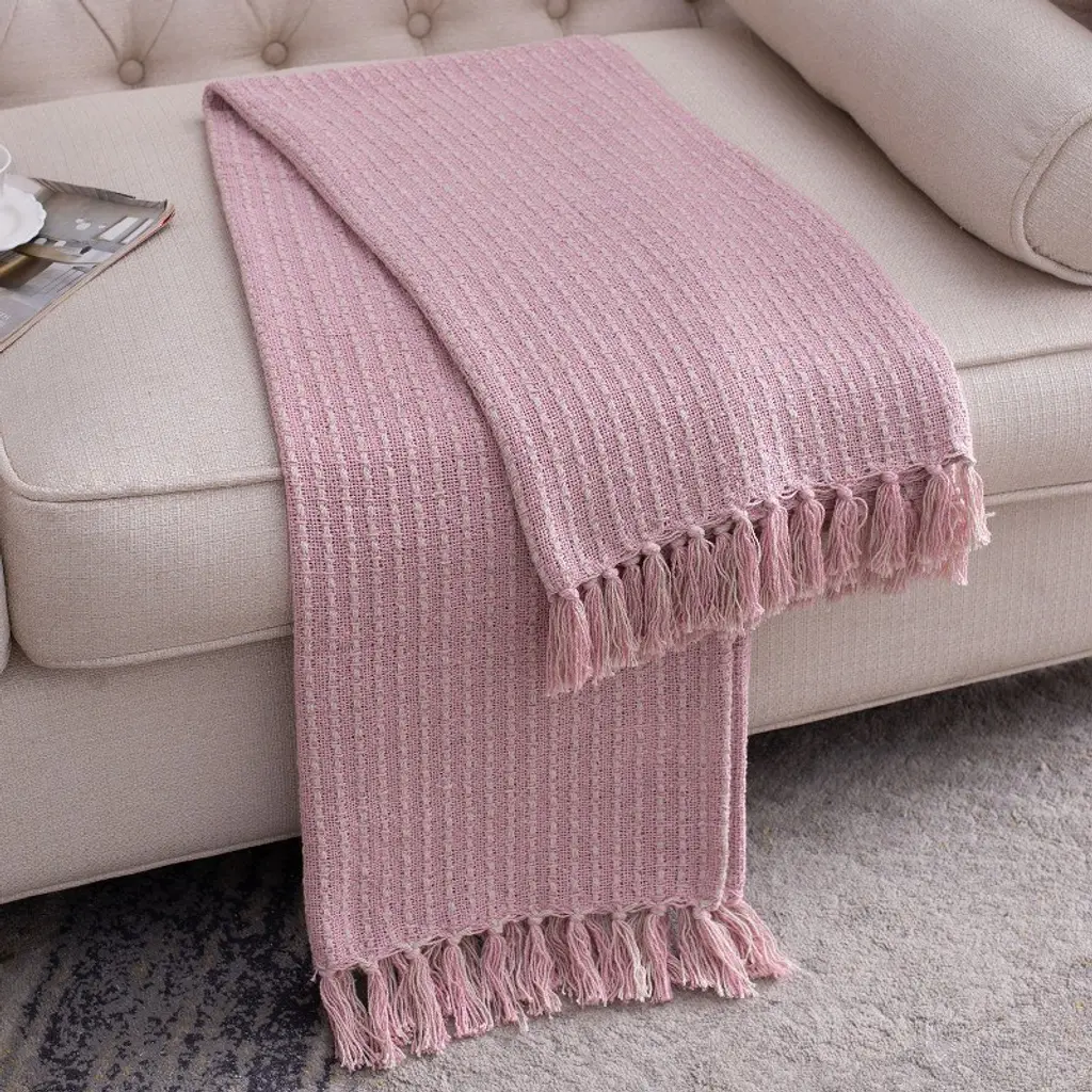 Ktmbdw Striped Collection Cotton Throw Blanket, 50x60, Pink