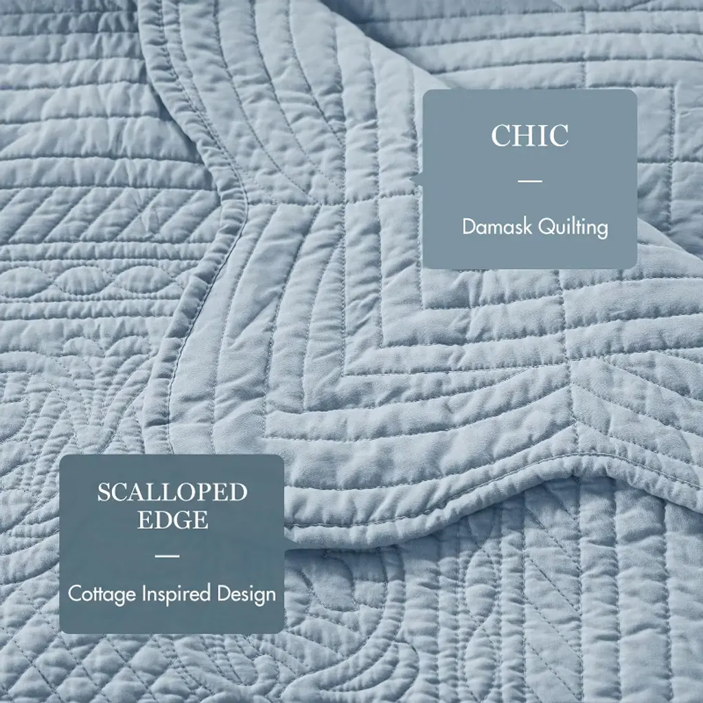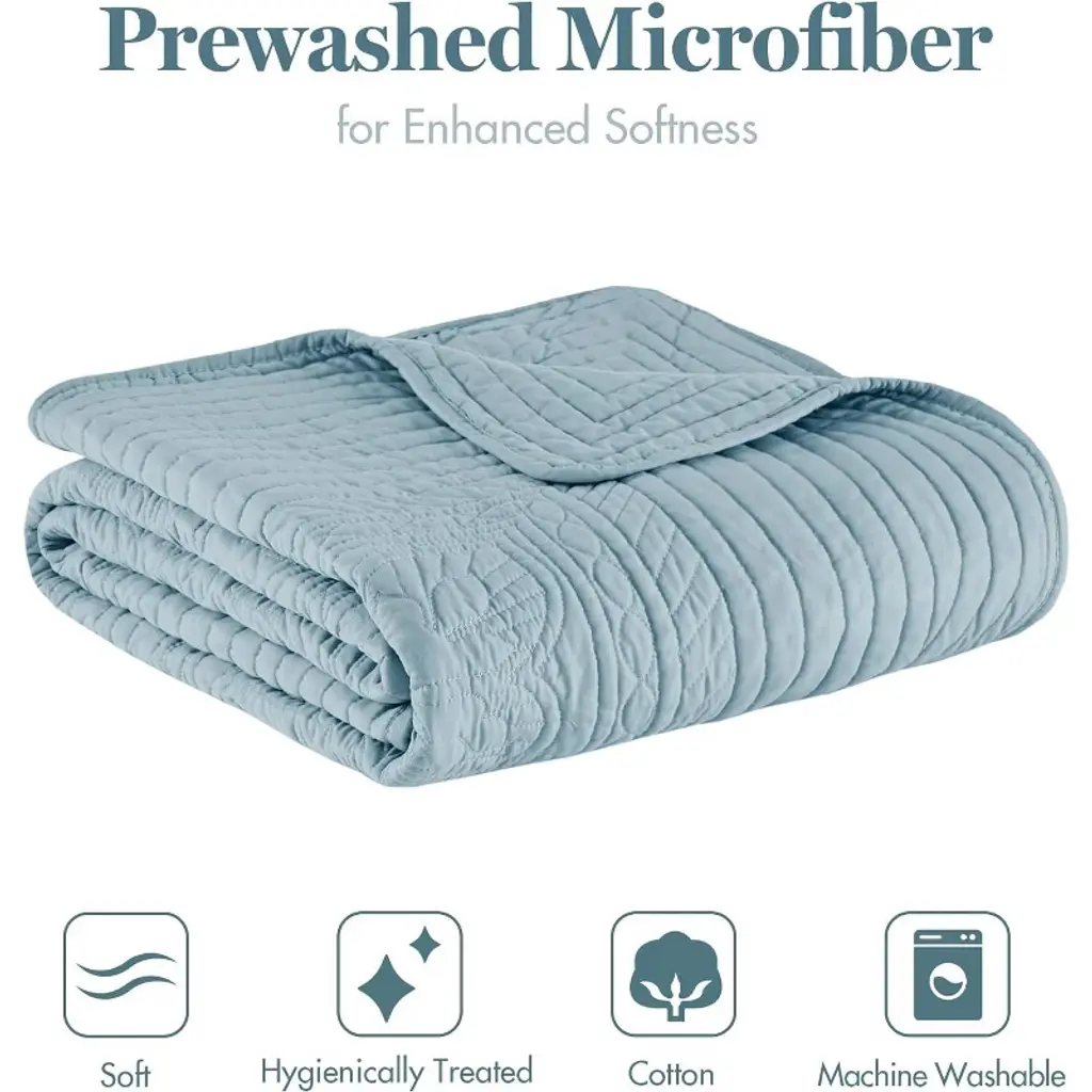 Kwpzqeb Quilted Throw Blanket- Microfiber Quilt Throw With Scallop Edge Design, Reversible Versatile Lap Quilt For All Season, (Blue 60x72")