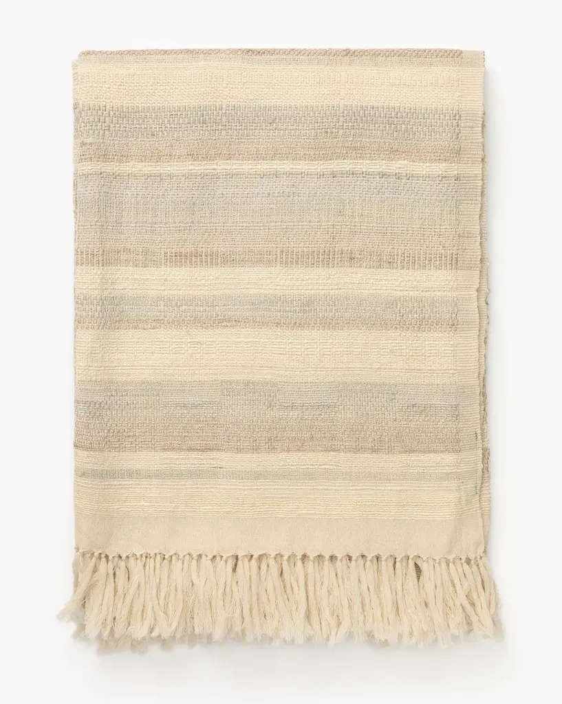 Made with a blend of wool and silk, the Laney Stripe Throw is both beautiful and functional. The soft feel and woven construction of the throw bring luxury to your home, whether draped over a sofa or lounge chair.