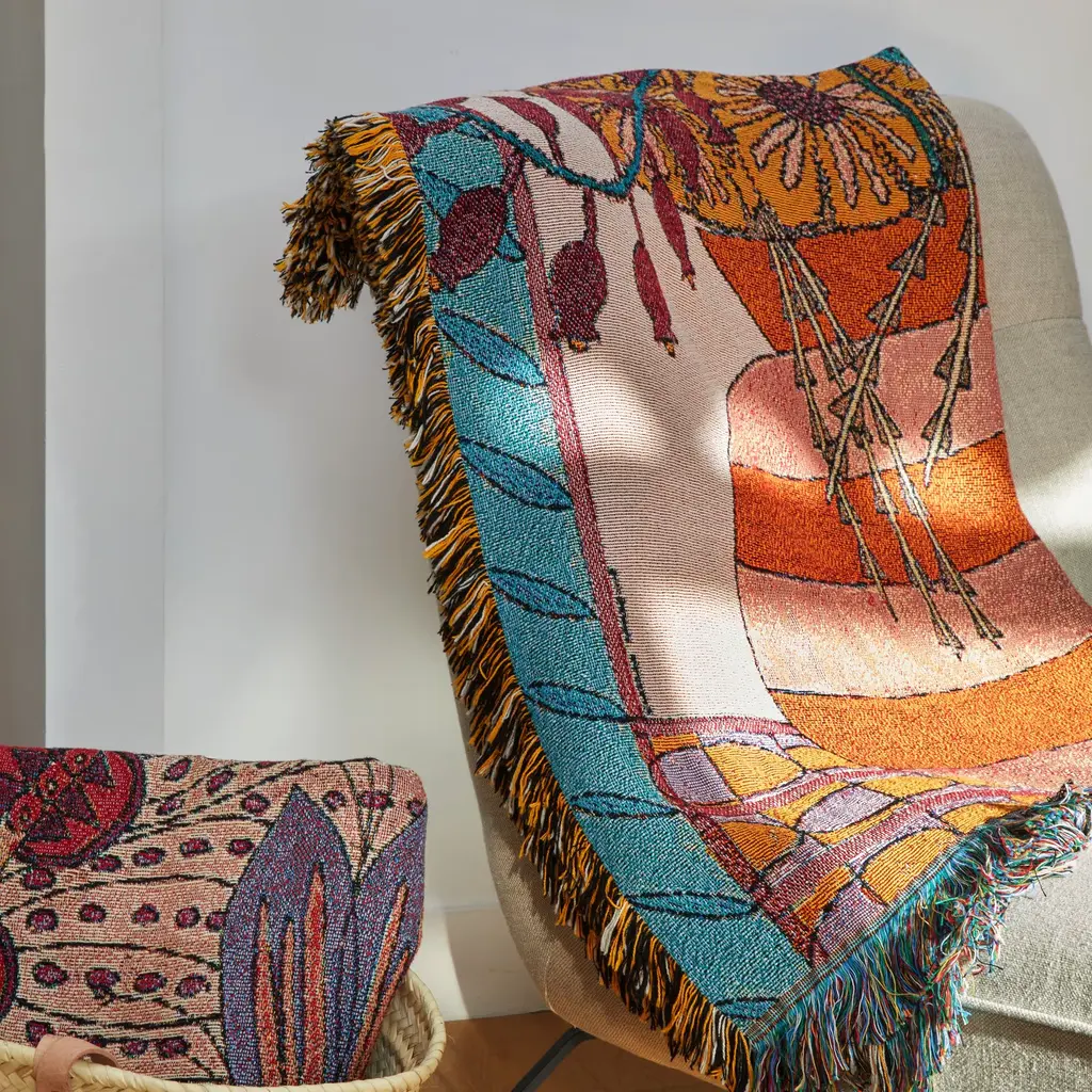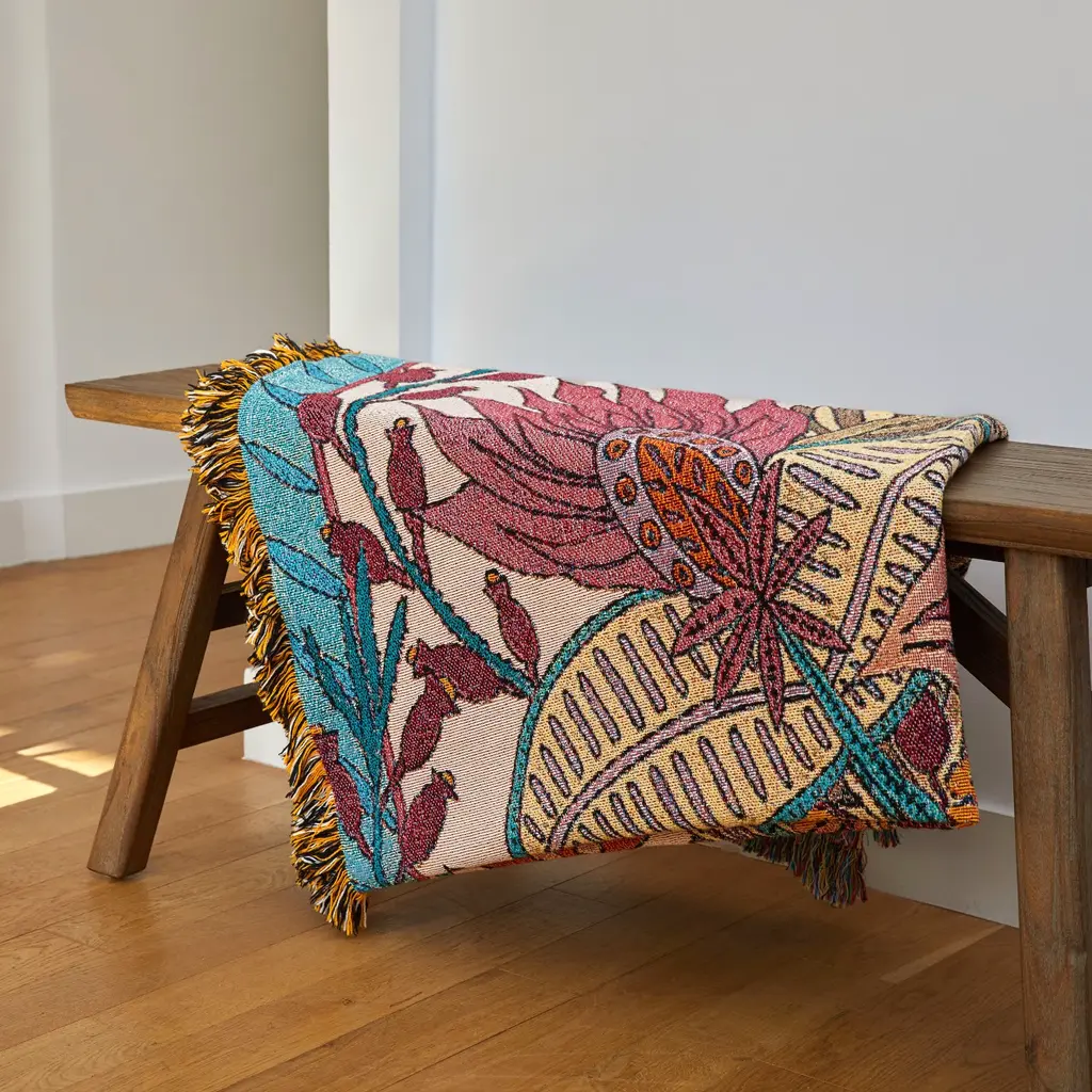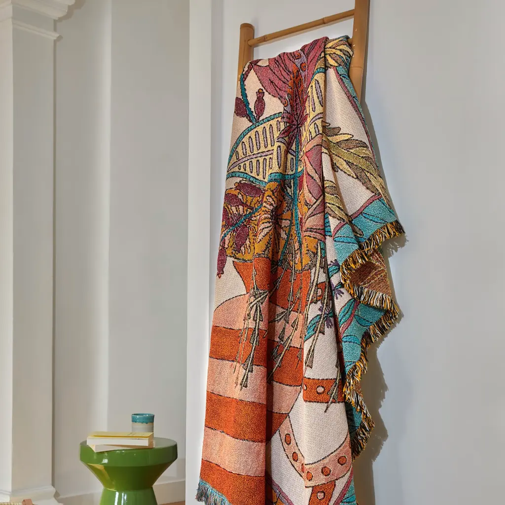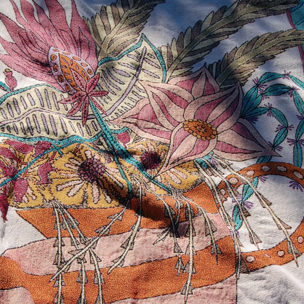 Our Le Broc throw enhances your sofas and armchairs but can also adorn your bed as a blanket or bedspread, as well as your floors or walls as true works of art. The choice is yours!The Le Broc throw was hand-drawn by Pauline Paranthoën and carefully woven using recycled cotton. With its warm, wild tones and patterns, it adds a touch of whimsy and elegance to your decor.