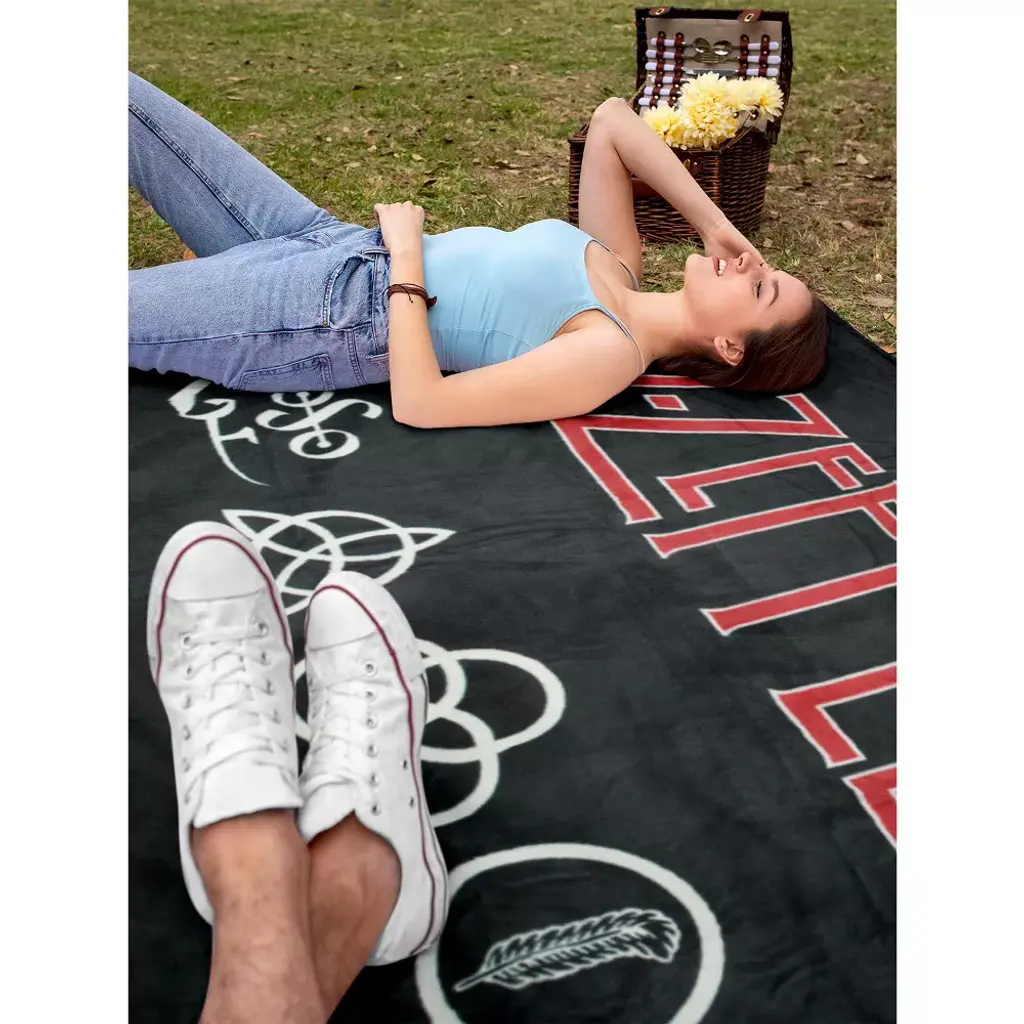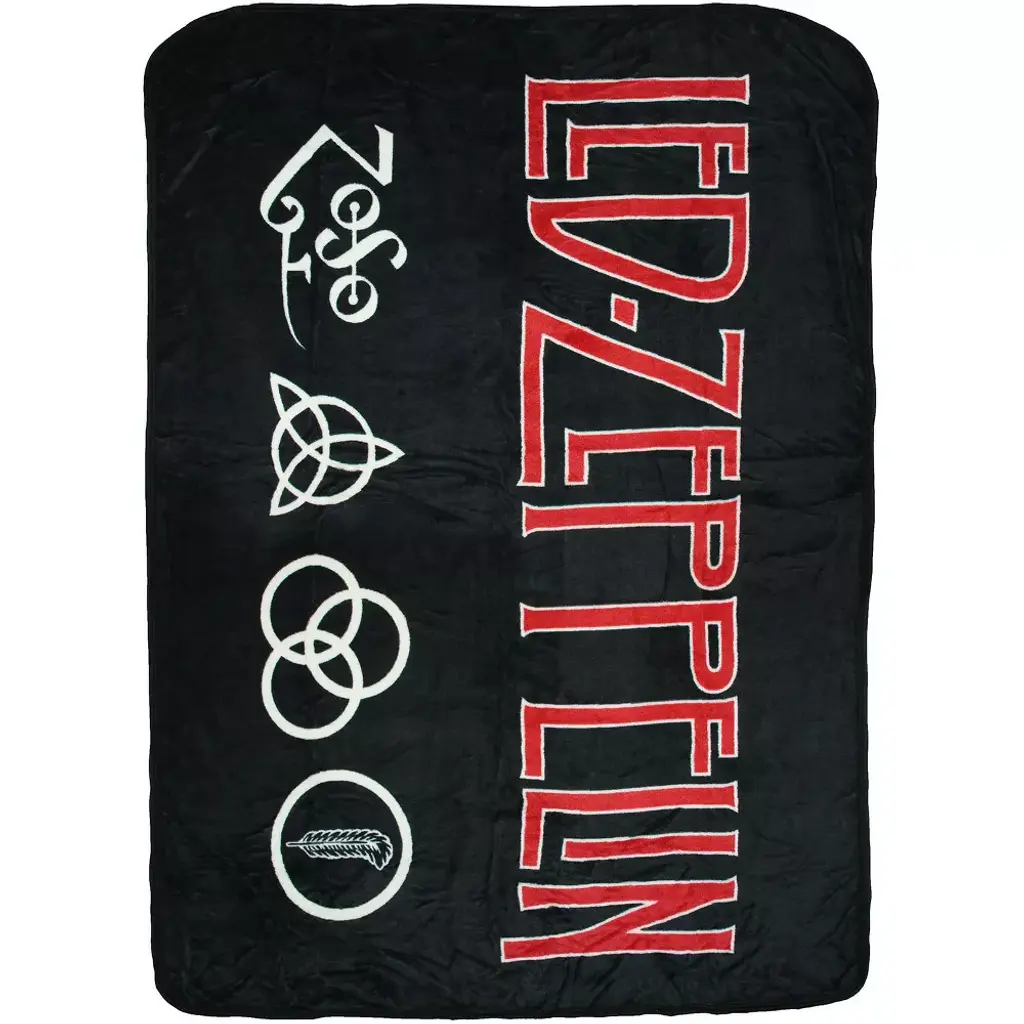 This Led Zeppelin throw blanket an product! Led Zeppelin is one of the greatest rock bands of all time! With incredible hit songs like Kashmir, Stairway To Heaven, Whole Lotta Love, Immigrant Song, Ramble On, and many more, every one of their albums is a must listen! This Led Zeppelin blanket features a large front script design and the four symbols most know from album IV. The ultra-soft 100% polyester fabric makes it a great Grateful Dead blanket to snuggle up with any time of the day!