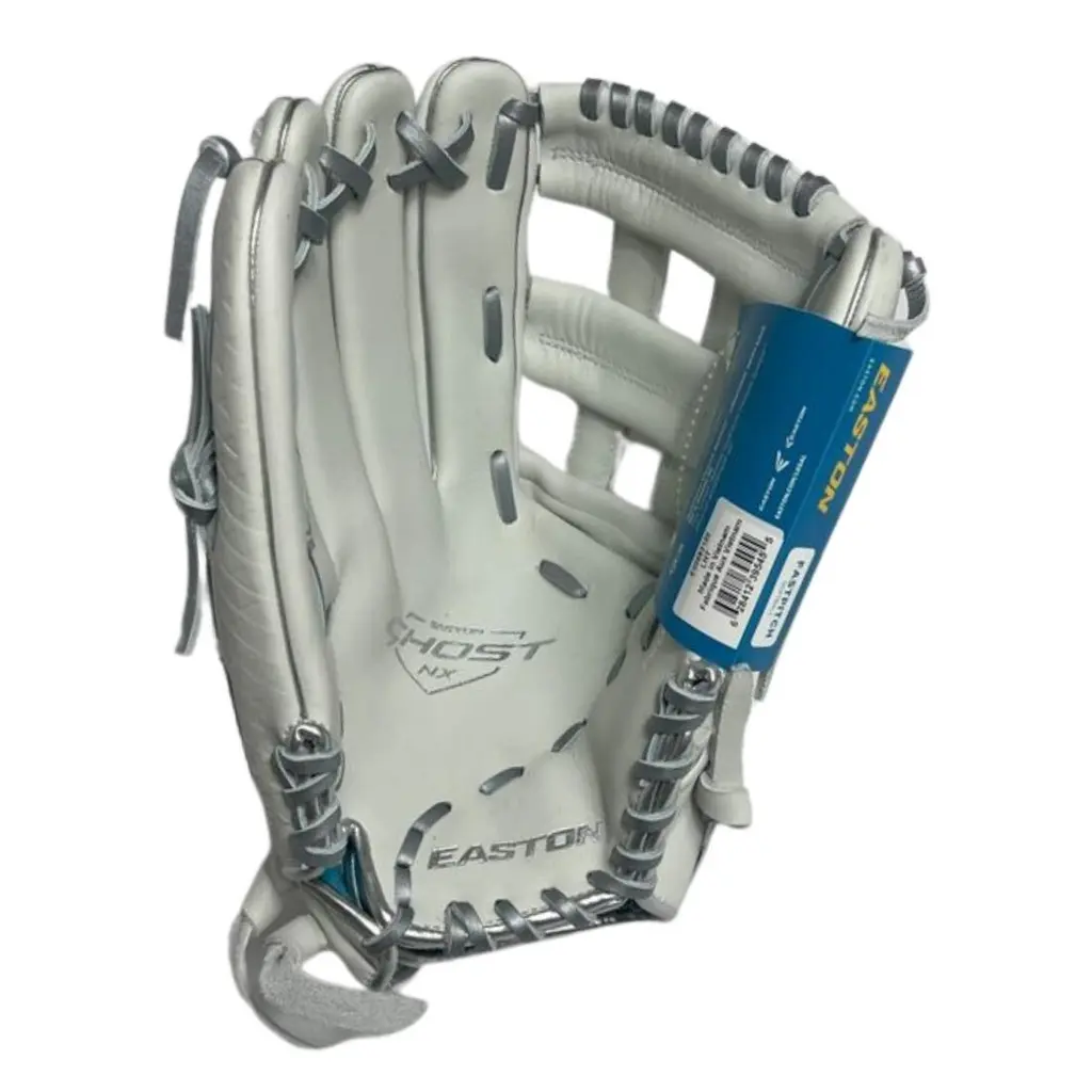 Easton's Ghost series is a symbol of elite fastpitch play. The Ghost NX 12.5-inch Fastpitch Pitcher/Outfield glove fits right in. These gloves were crafted in gameday-specific patterns designed for smaller hands and perfectly suited to the fastpitch game. On the outside, the Game Ready Diamond Pro Steer leather and Flex Notch closure system make this glove super soft and easy to handle right away.