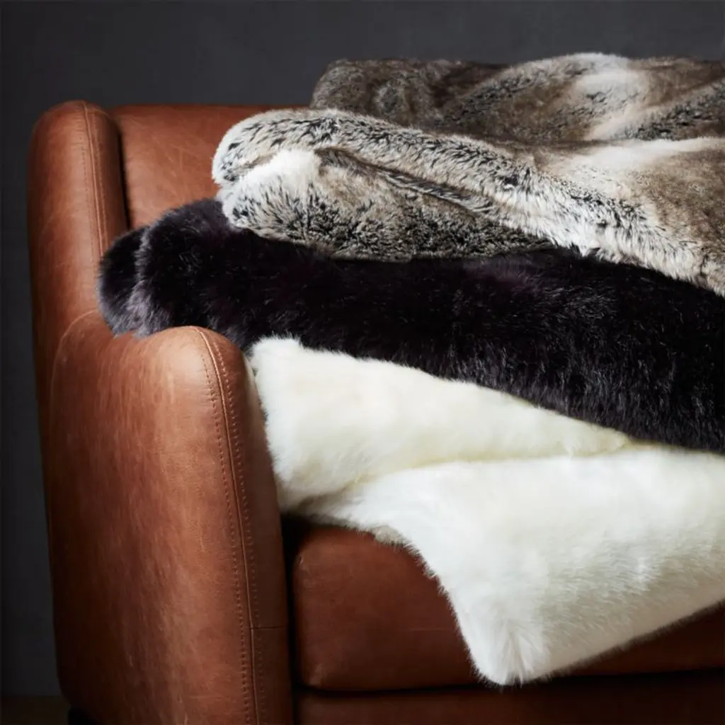 Large and luxe, our grey throw is maxed out in soft faux fur. Layers touchable texture draped over the sofa, chair or bed. Generously sized to snuggle two.