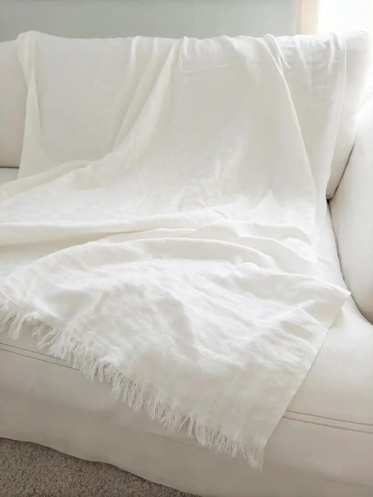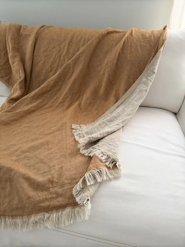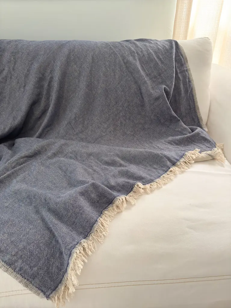 The Linen Fringe Throw effortlessly transitions from the living room to the bedroom, offering comfort, versatility, and a luxurious feel. Crafted in Turkey from high-quality, soft fabric, it’s sure to become your favorite throw. Color: White, Navy Blue, Aegean Blue, Orange, Burgundy, Olive Green & Beige, Mocha Brown, Charcoal Grey, Black Size: 50"x70" Material: 60% Linen 40% Cotton Made in Turkey. Machine Wash Delicate with like colors. Tumble Dry Low. Low Iron.