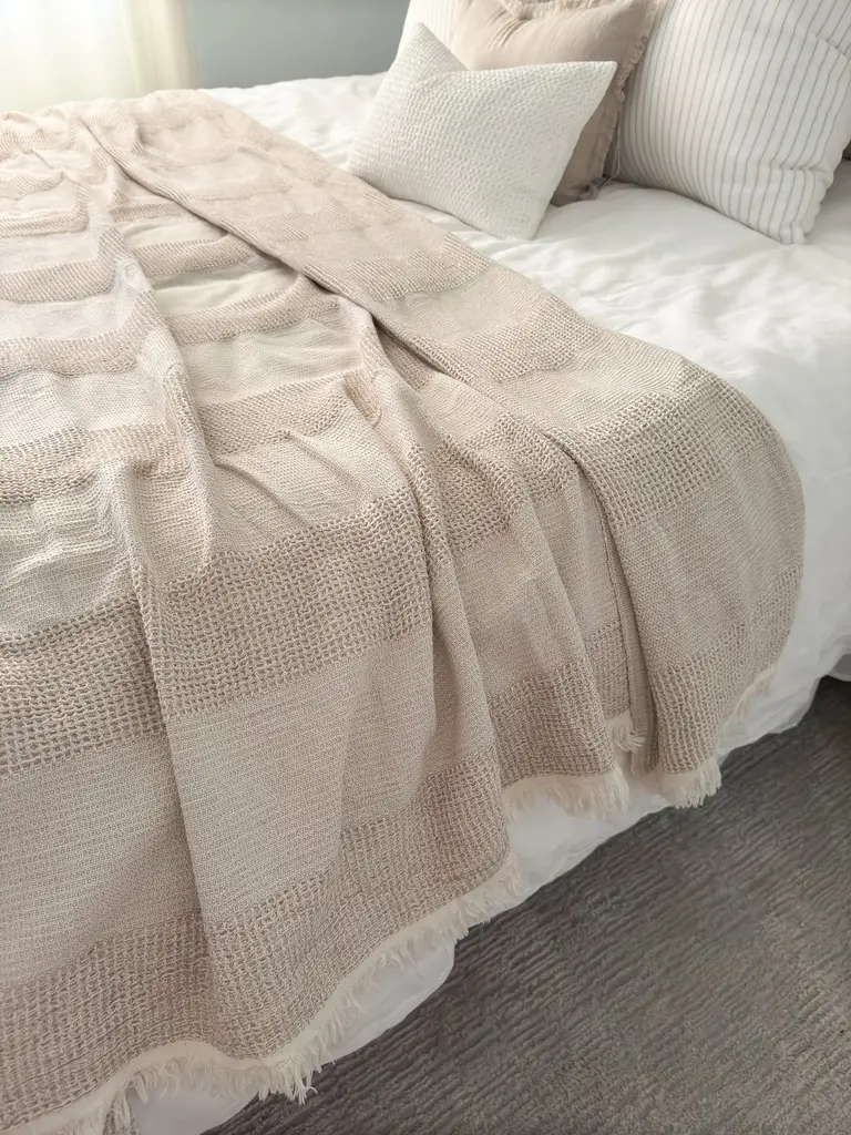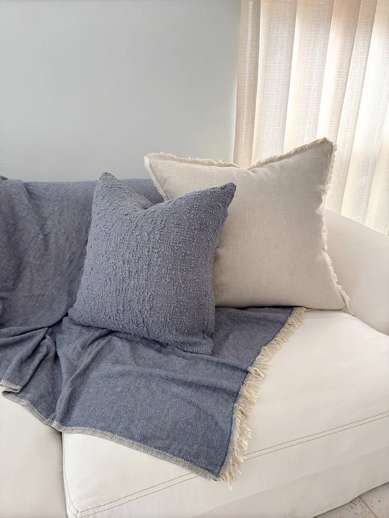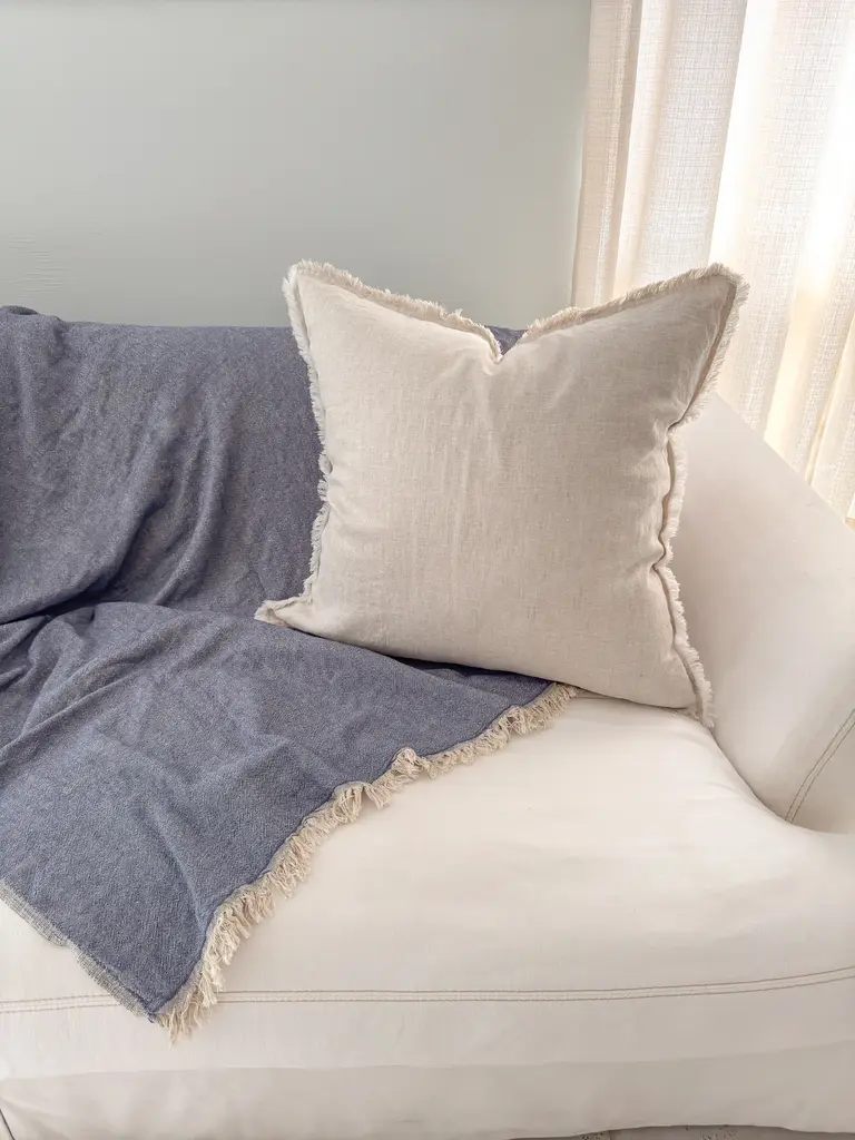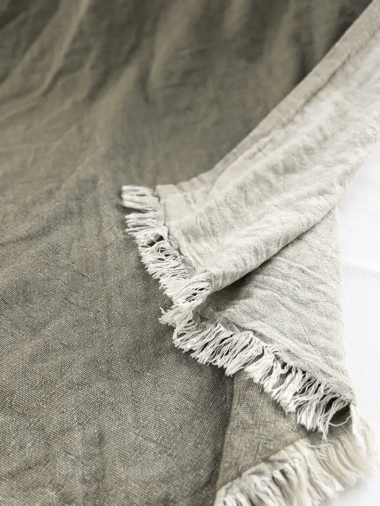 The Linen Fringe Throw effortlessly transitions from the living room to the bedroom, offering comfort, versatility, and a luxurious feel. Crafted in Turkey from high-quality, soft fabric, it’s sure to become your favorite throw. Color: White, Navy Blue, Aegean Blue, Orange, Burgundy, Olive Green & Beige, Mocha Brown, Charcoal Grey, Black Size: 50"x70" Material: 60% Linen 40% Cotton Made in Turkey. Machine Wash Delicate with like colors. Tumble Dry Low. Low Iron.