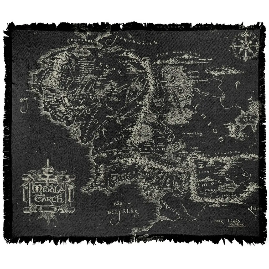 Lord Of The Rings Full Middle Earth Map Design Plush Throw Blanket 46' x 60' Multicoloured