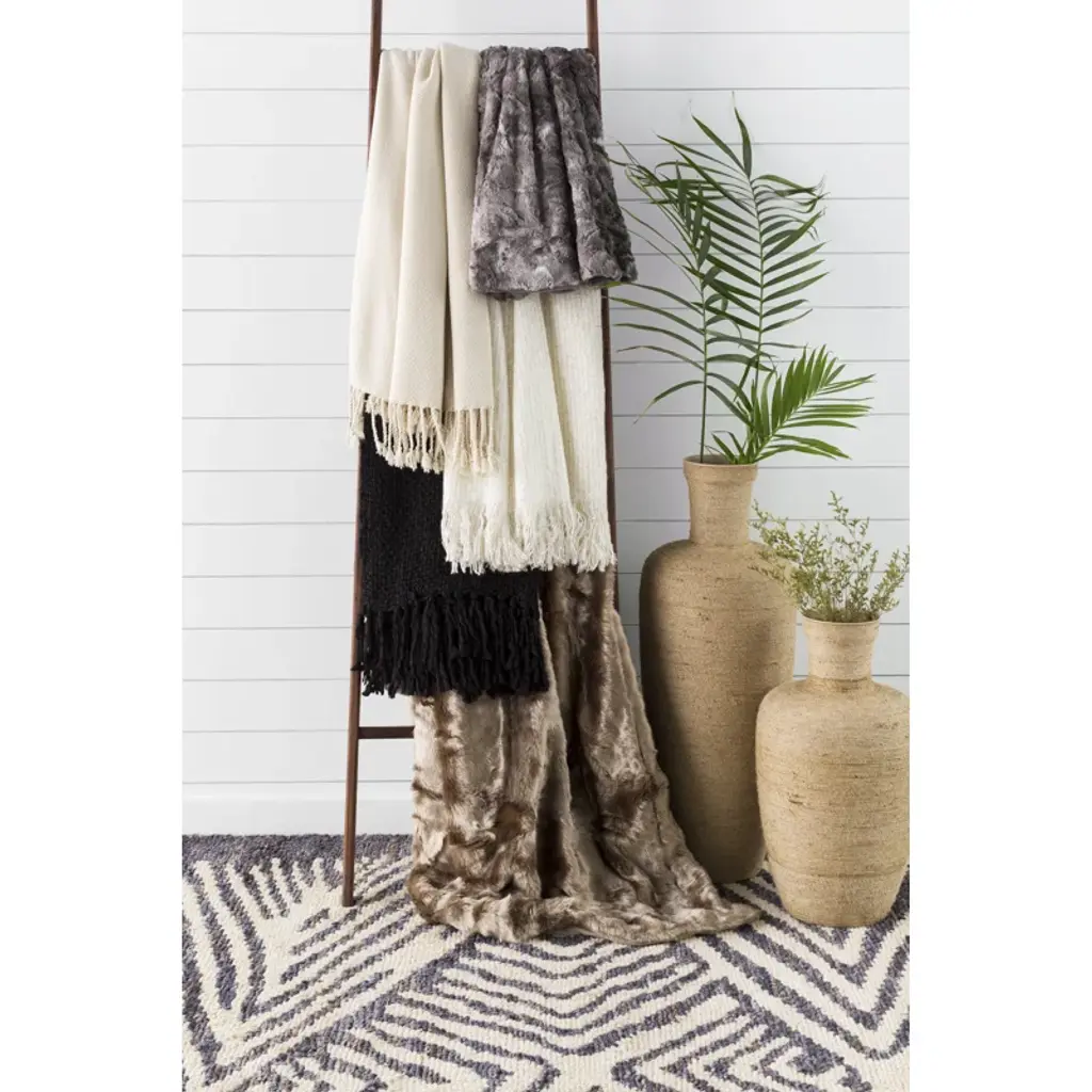 Ideal for staying cozy in every season, this throw blanket offers style and function in a size- and wallet-conscious package. Ideal for updating your space with ease, this blanket is made from acrylic and features a fringed design for an approachable, trend-forward look we love. Measuring 50" x 60", it's a great choice for tossing over the back of an armchair, gathering at the end of your bed, or adding texture to an entryway bench. Plus, its neutral hue lets it easily blend with almost any color scheme.