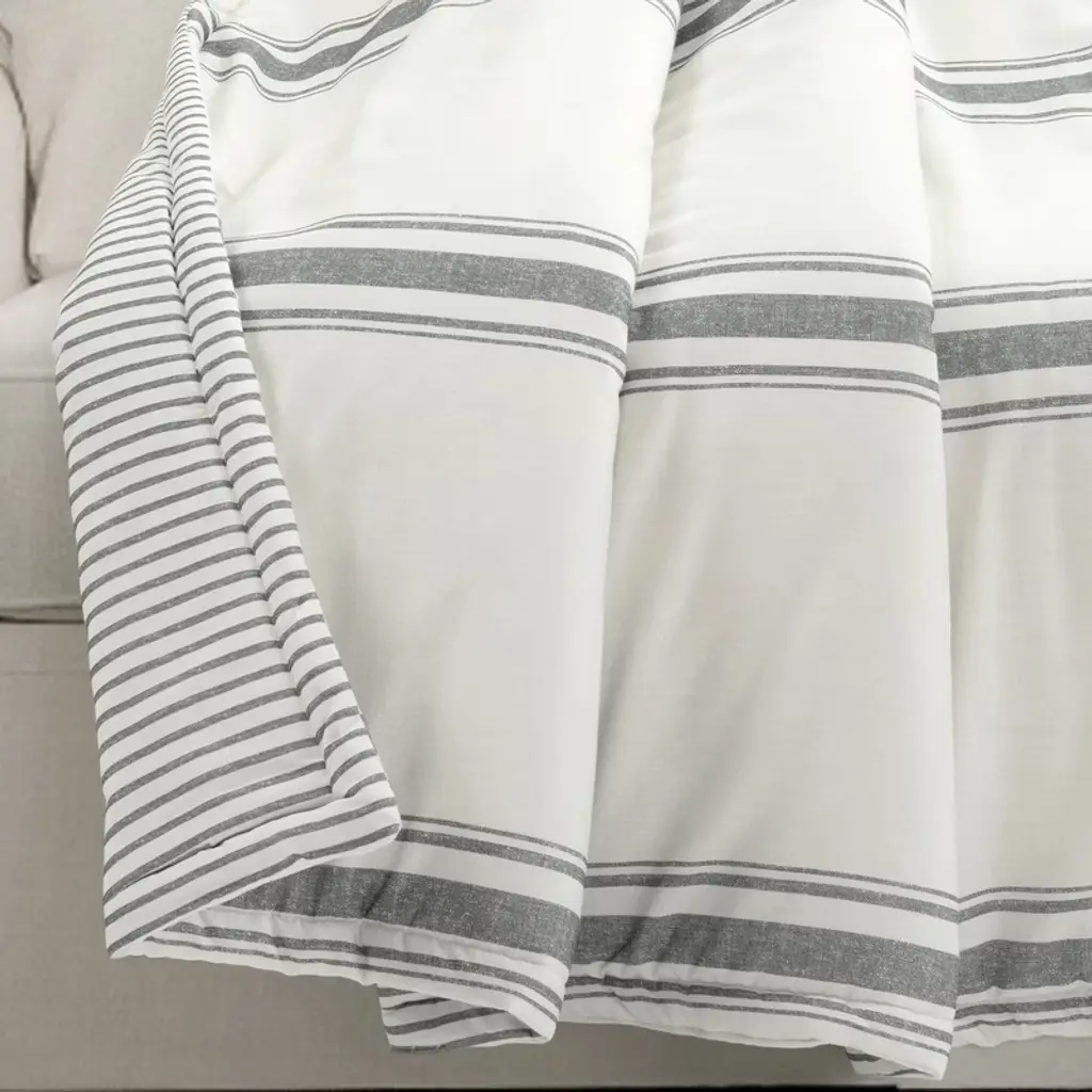 Lush Décor Farmhouse Stripe Reversible Cotton Throw Dark Gray Single 50x60