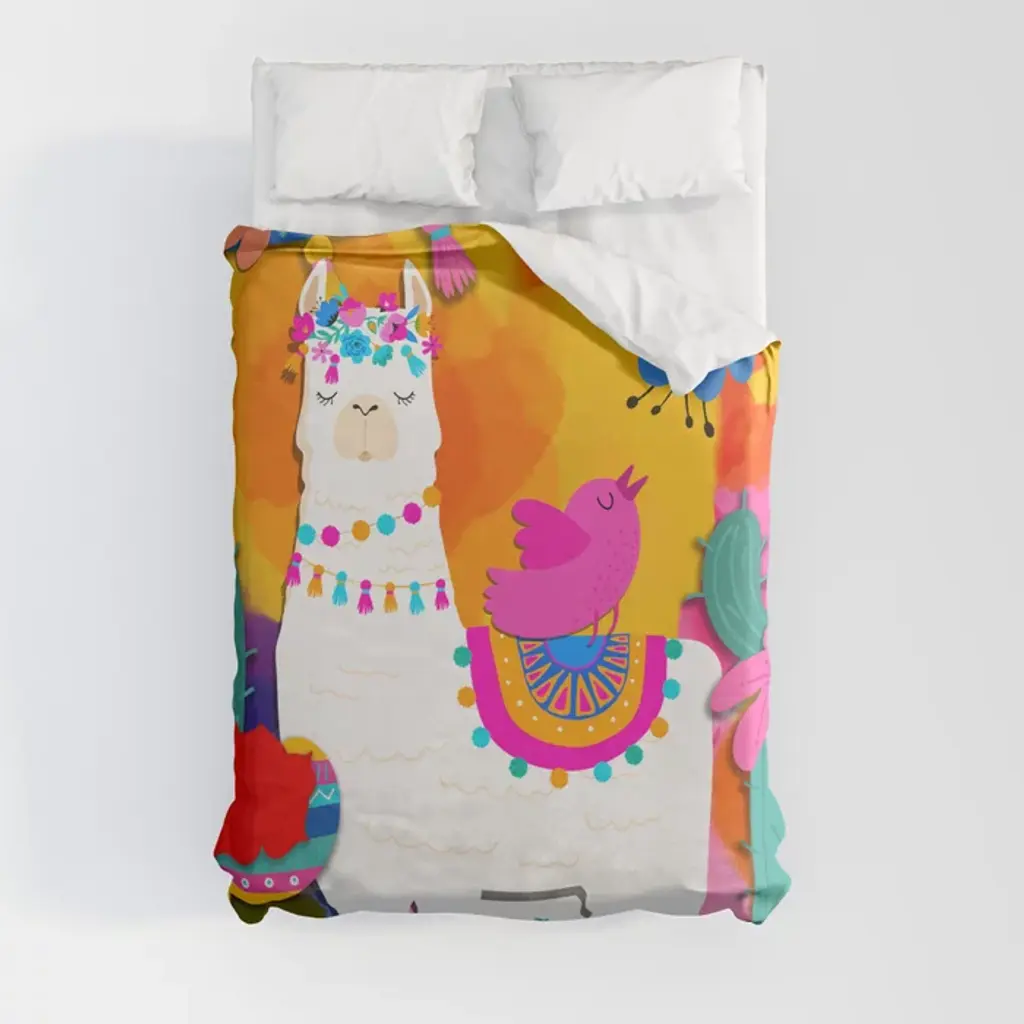 Update your child’s bedroom or baby’s nursery with the soothing colors of this throw which features a southwestern style llamas, cacti and rainbows on the front. Small hearts adorn the back side. Each side of this soft throw blanket brings its own unique style to your space. Because it is reversible, you can easily switch up the look in your space by flipping it over. The throw measures 60 inches long by 50 inches wide. It's the perfect size for up to three young children to snuggle in together. It can also be used as the main blanket on a toddler's bed. This throw conveniently is safe to machine wash and tumble dry on a low setting. Please read all instructions on the label before washing.Features: