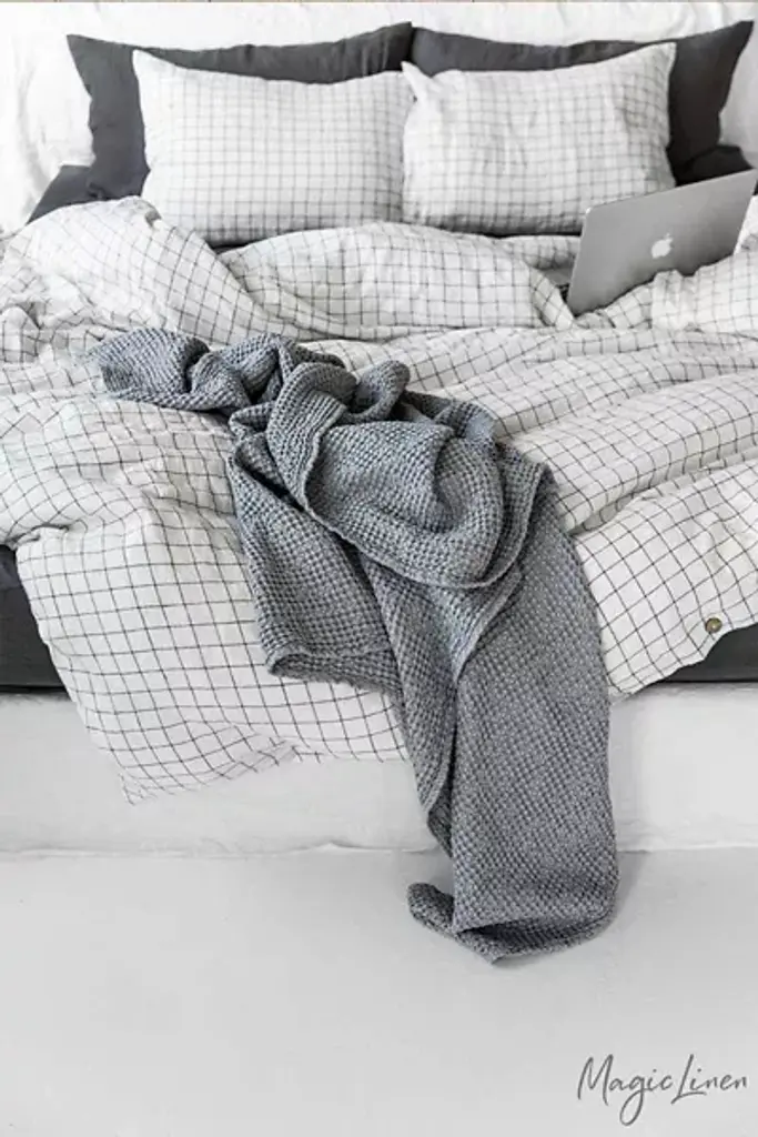 Linen-cotton blend throw in various colors. Add style and comfort to your home with this super-soft linen and cotton blend waffle throw in forest green. You can use it as a stylish decor detail in any room of the house - it will look great on a chair, sofa or on your bed. The size of the throw also makes it perfect for when the temperature outside starts to dip, use it as a wrap around to keep warm and cozy. \- Includes one blanket \- Available in: 53x81" / 135x205cm \- Made from linen (53%) and cotton (47%) blend \- Stone washed for maximum softness \- Imported