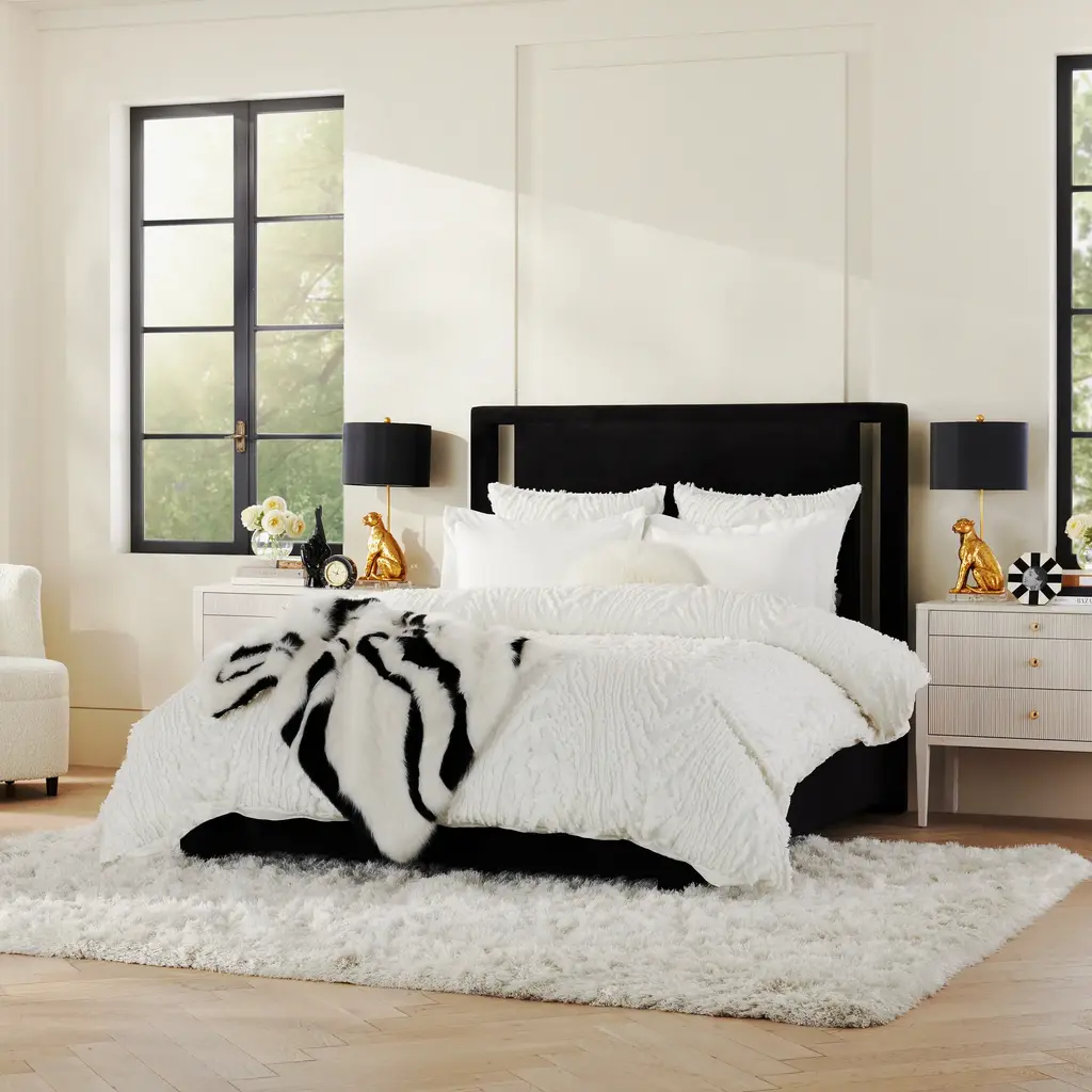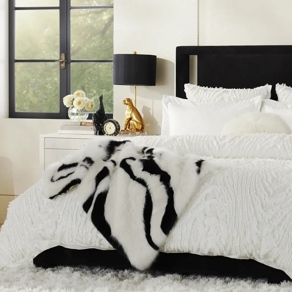 Lounge in luxury with our oversized faux-fur Marble throw, featuring a free-flowing black-and-white print inspired by natural stone and equally luxe velvet on the reverse. Perfect for gifting or adding to your own collection. Z Gallerie exclusive