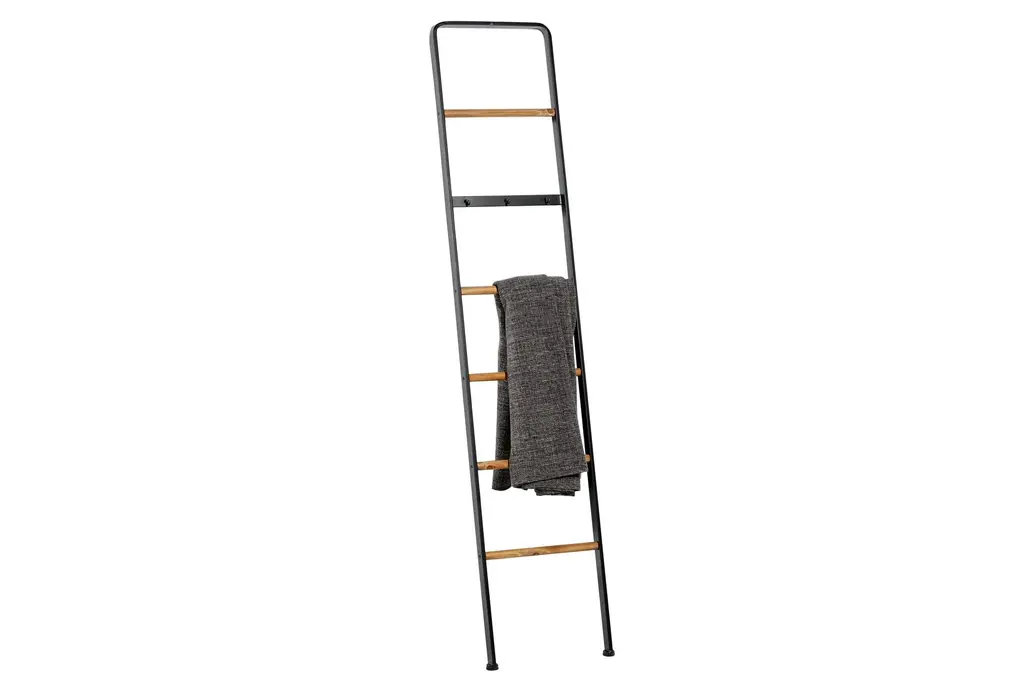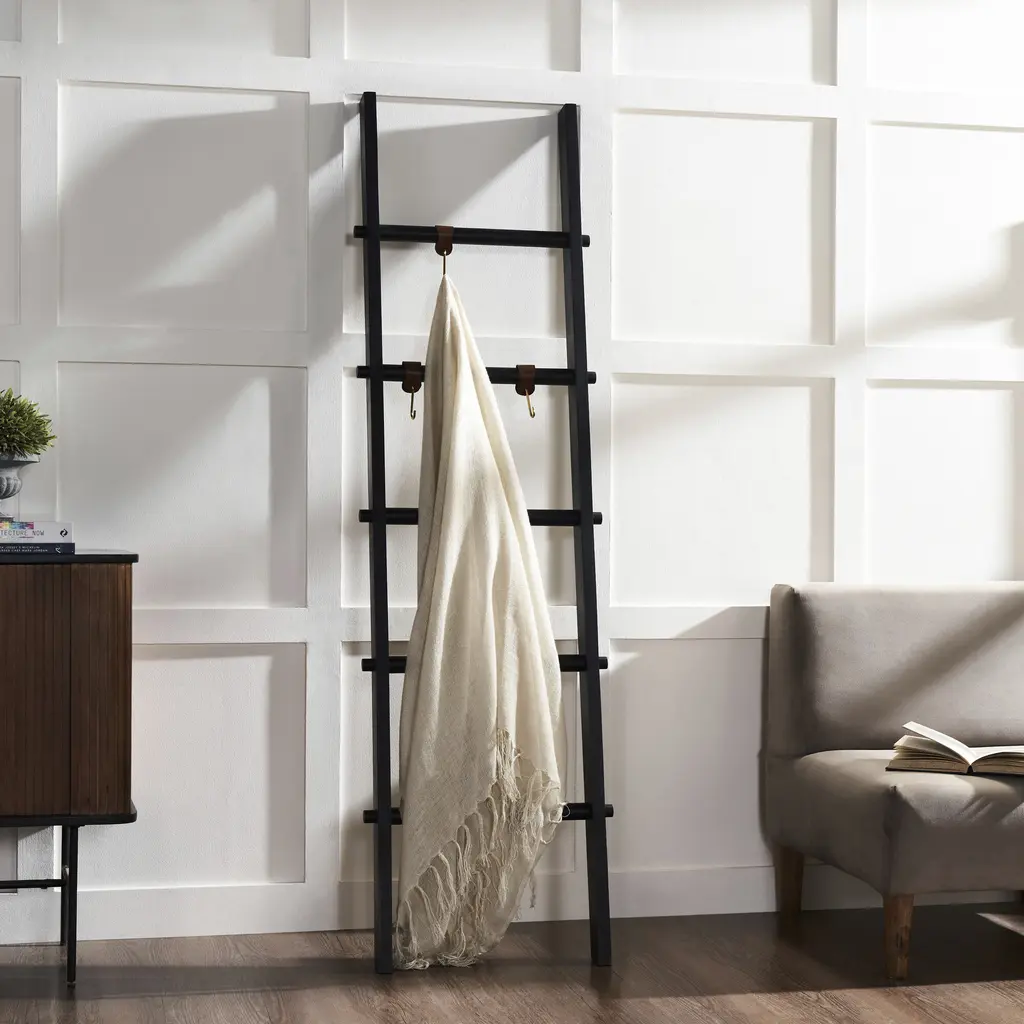 Mareva Black Decorative Ladder For Throws, With Pu Leather Accent Hooks