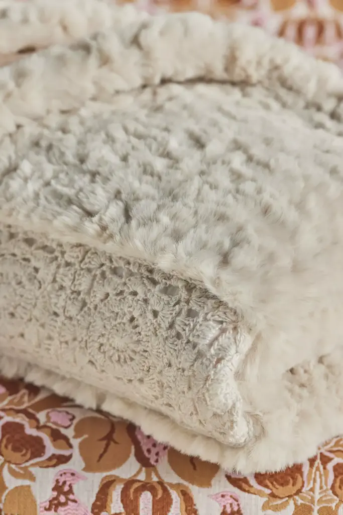 Margaux Crochet Faux Fur Throw Blanket
