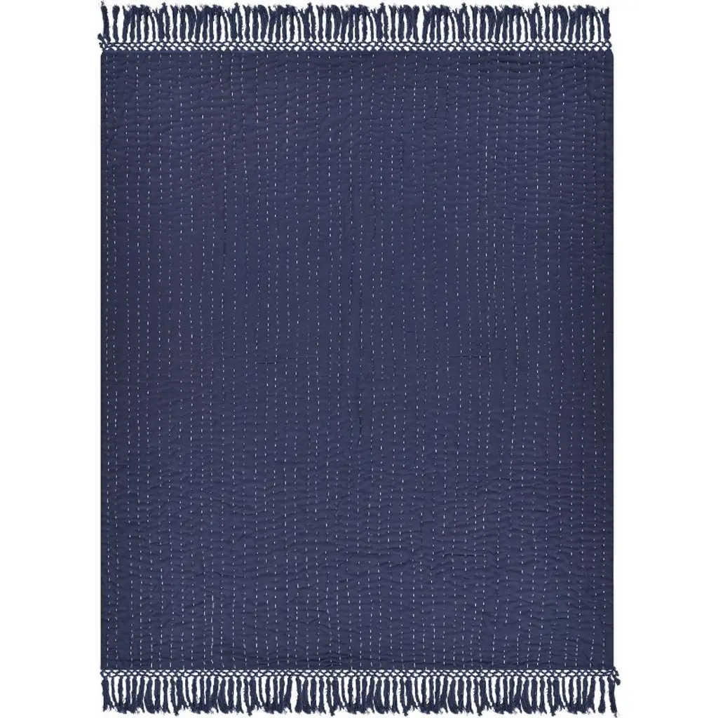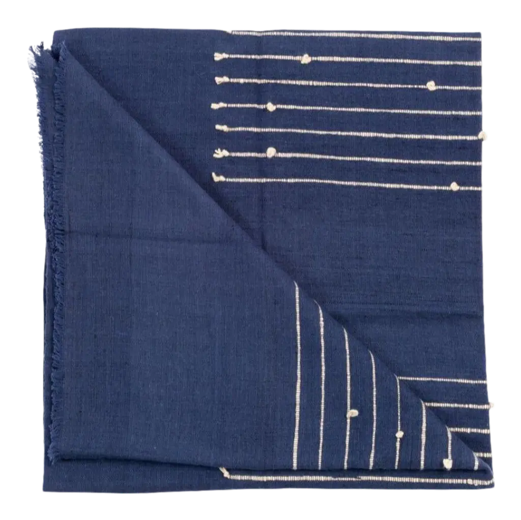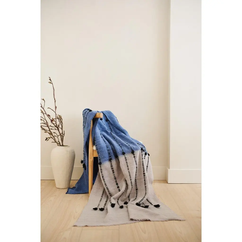 A calming reflection of the lakeside skies with pleasing color choices and textural details all created meticulously by expert artisans is what Mari Throw is all about. Modern harmony brought to life with locally sourced hand spun merino from the foothills of Himalayas, scoring well on carbon footprint impact as well. Mari is quite a statement making piece , adding serene tones to your interiors and living spaces. Each piece is 100% handmade from start to finish, making it a unique sustainable throw which is both classic and minimal modern in its appeal.Mari Throw is soft to touch and wears well over time. Requiring attention to detail and finishing, this throw luxuriously combines heritage value. High quality craftsmanship makes it reversible to arrange and use. Fringes are kept short for a modern look.Eco friendly dyes Swiss dyes are specifically engineered to promote the lifespan of each throw. As this luxurious piece is completely handmade from start to finish.Designed by Variously in Michigan, each throw is developed in direct collaboration with handloom weavers based in the foot hills of Himalayas in Nepal. Mari is a timeless throw / blanket that will complement your personal or living spaces. While also being a thoughtful gift, Mari Handloom Throw also supports artisan communities ethically and directly ( no middle men ) Throw Size: 110 cm X 210 cm Material: 100% soft merino from Nepal Colors: Blue, Gray, White, BlackArtisan base: Ethically & responsibly handwoven by artisans in Nepal.Wash care: Gently hand wash using gentle detergents. Hang dry in cool shaded place or delicately dry clean only.What Makes Your Purchase Sustainable ?Eco friendly dyes free of toxic chemicals used.Support employment of women artisans.100% handmade ethical manufacturing process by artisans.Uses only 100% natural responsibly sourced materials.Small batch production ensures higher quality & less wastage.