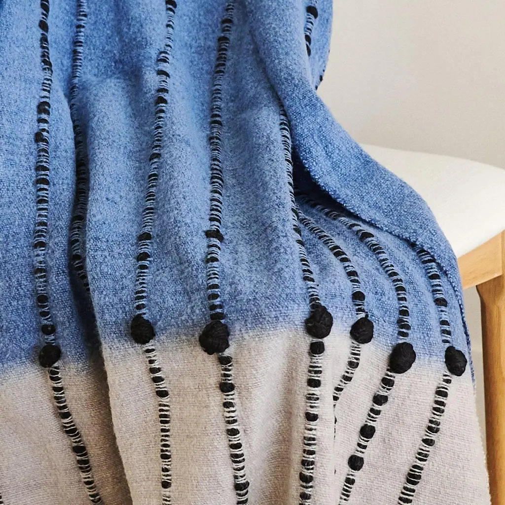 Mari Blue Gray Calming Hues Hand Woven Hand Knotted Textured Plush Merino Throw