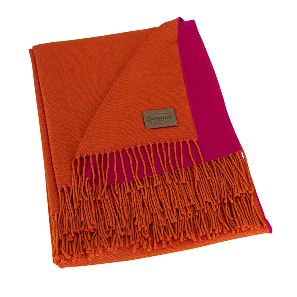 Marigold Handloom Merino Modern Artisanal Throw In Yellow Red Tones With Fringes