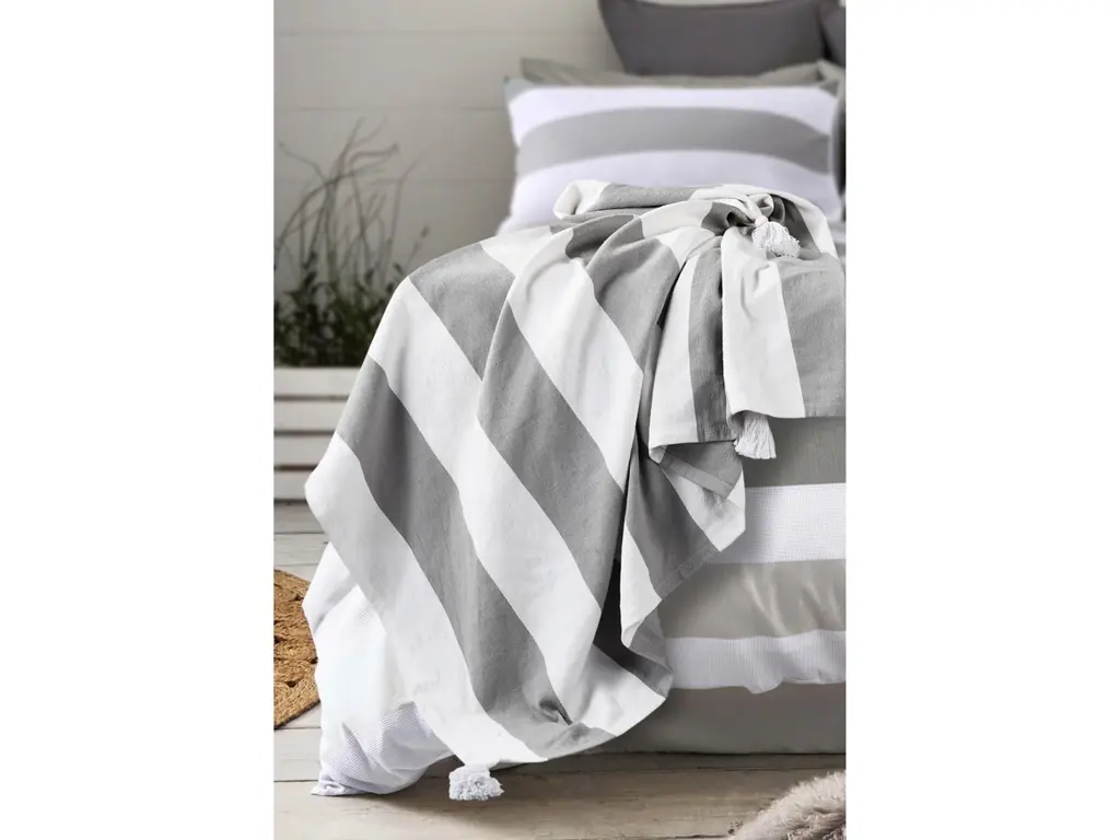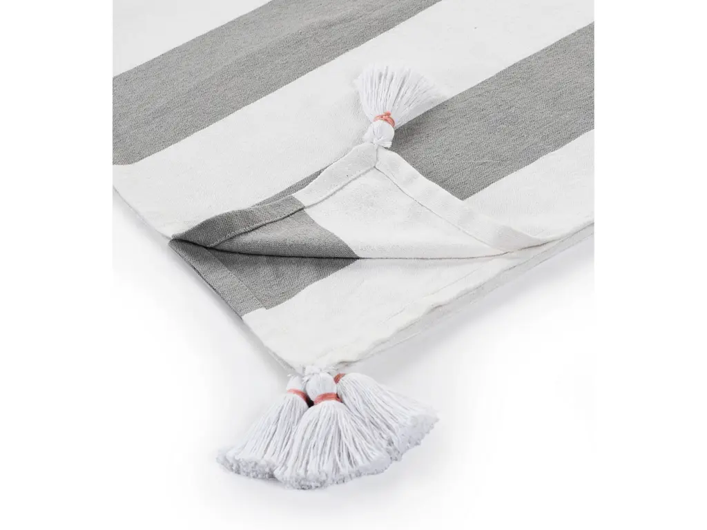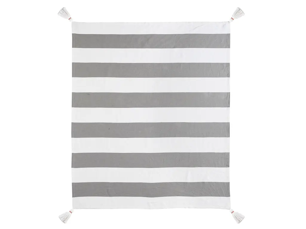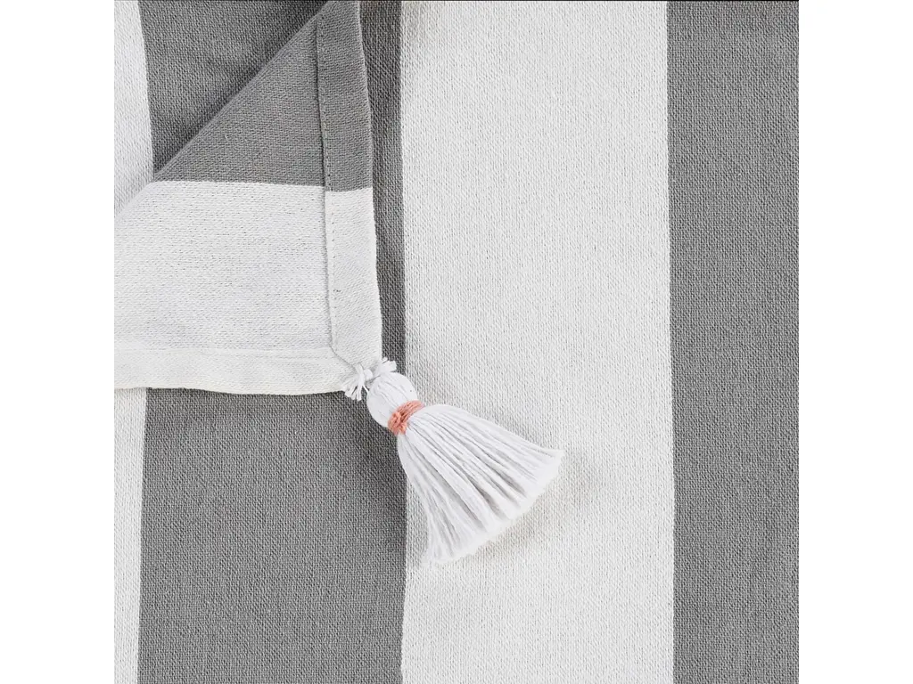 Designed with a balance of leisure and luxury in mind, this everyday accent merges well with multiple decor styles from modern to coastal to farmhouse; this addition is a neutral necessity for your home or office. Standing alone or layered with other accents, this throw brings comfort and style to your space in light gray and white tones featuring rich bold stripes and finishing corner tassels. Bring fashion and function into your home by cozying up or draping over a chair, sofa, couch, or bed.