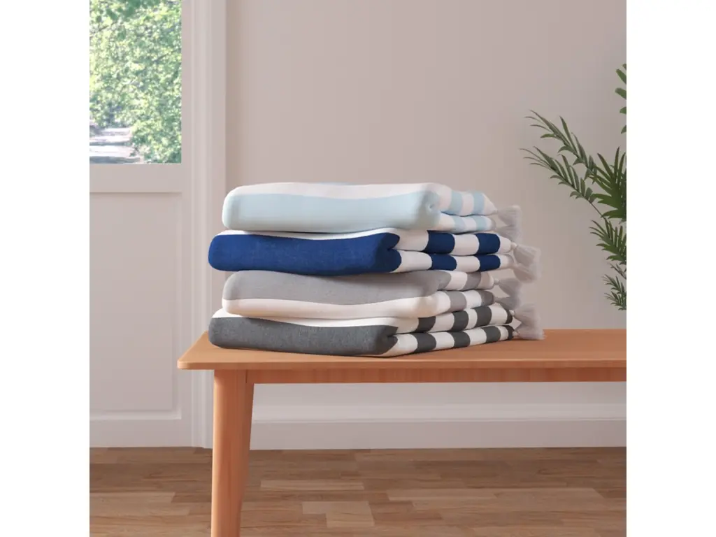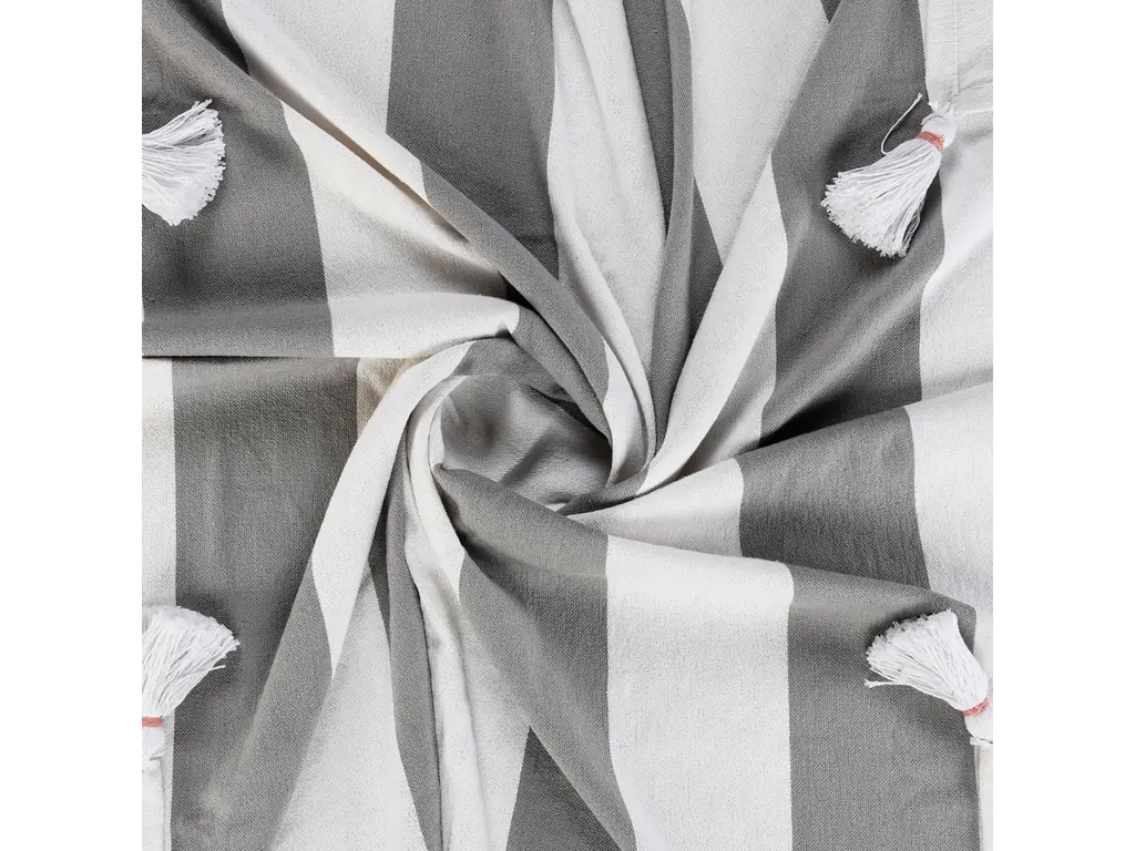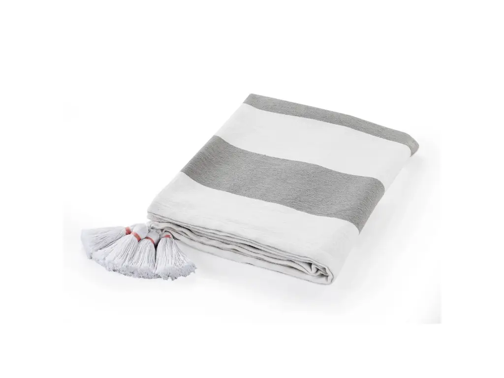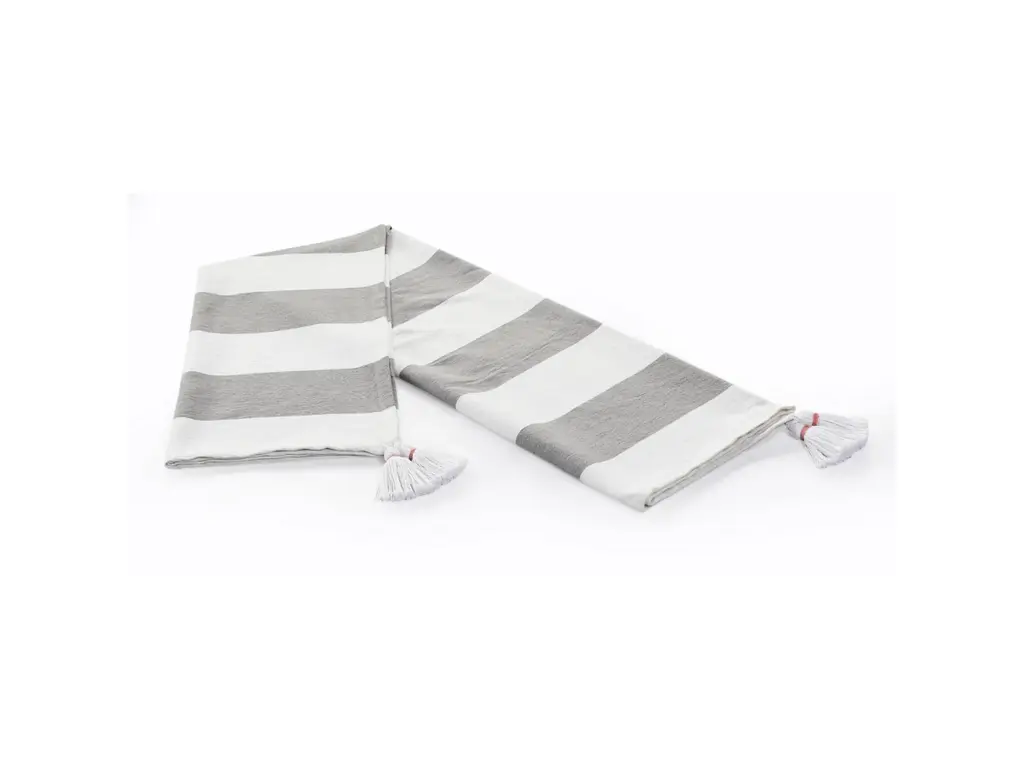 Designed with a balance of leisure and luxury in mind, this everyday accent merges well with multiple decor styles from modern to coastal to farmhouse; this addition is a neutral necessity for your home or office. Standing alone or layered with other accents, this throw brings comfort and style to your space in light gray and white tones featuring rich bold stripes and finishing corner tassels. Bring fashion and function into your home by cozying up or draping over a chair, sofa, couch, or bed.