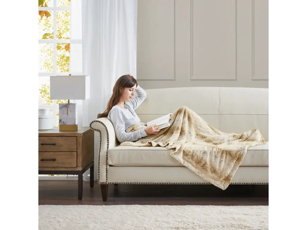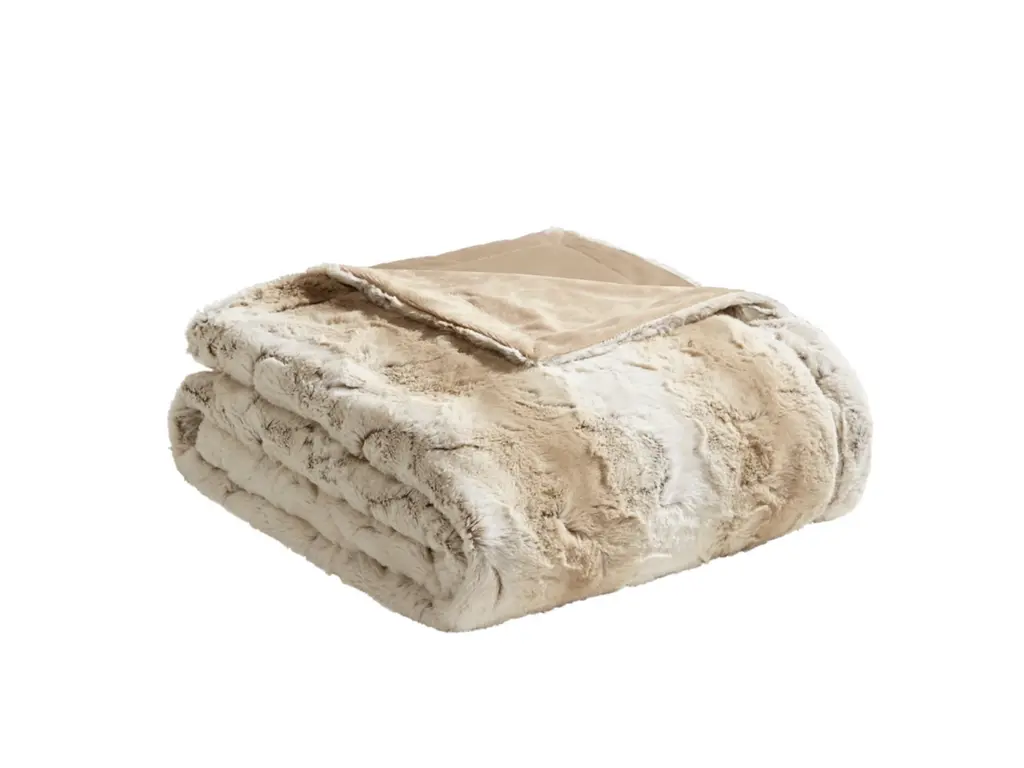 The Madison Park Zuri oversized throw features a luxuriously soft faux fur and reverses to a solid faux mink. This faux fur throw is the perfect modern update and adds a glamorous accent to your home.