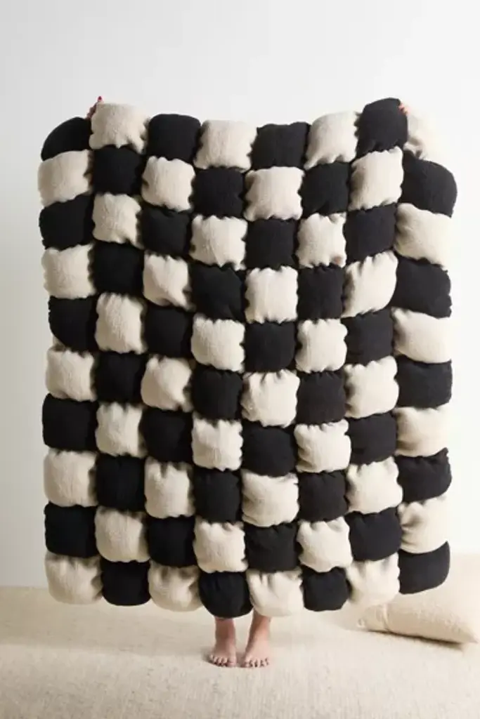 Bring the coziest essentials to your next cuddle sesh with this puffy fleece throw blanket featuring a puffy checkerboard pattern stitched allover in our signature Marshmallow silhouette. This fleece blanket in multi-colored hues is backed with a seriously soft fleece panel. Each puff is filled with fluffy polyester that lends the coziest feel to your bed or sofa. Available exclusively at Urban Outfitters. **Features** \- Marshmallow Cloud fleece throw blanket \- Statement fleece throw blanket from UO Home in our signature Marshmallow design \- Heavy, weighted fleece blanket for a soothing cuddle sesh \- Puffy allover checkerboard pattern \- Add to your bed or drape it over the sofa, the light-but-warm feel is cozy anywhere \- UO exclusive **Content + Care** \- 100% Cotton; 100% polyester fill \- Machine wash \- Imported **Size** \- Dimensions: 60"l x 50"w \- Weight: 6.6 lbs