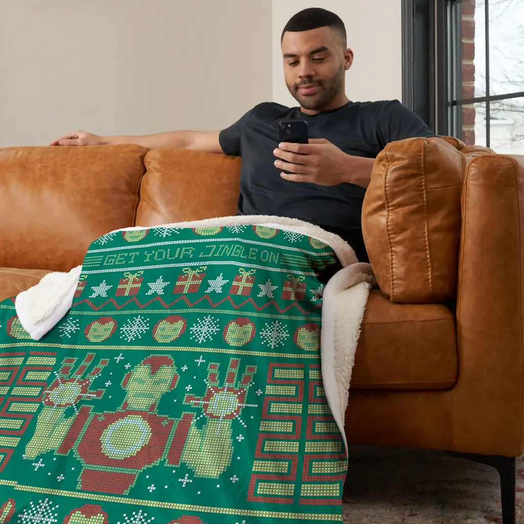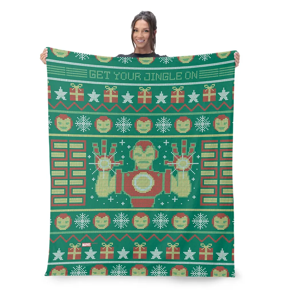 Marvel Avengers Christmas Silk Touch Sherpa Throw Blanket - 50 X 60 - Iron Man Jingle On