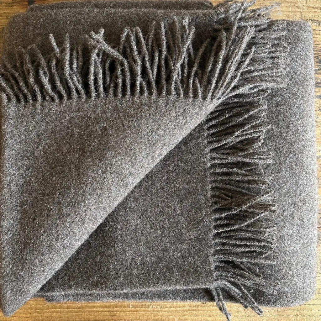 Mason Plush Alpaca Wool Throw With Fringe In Dark Coco