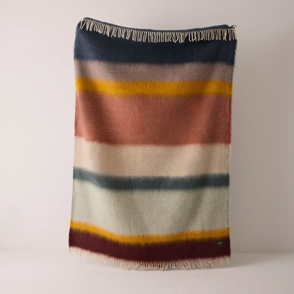 After decades of perfecting their craftsmanship, the tradition of weaving is stronger than ever within Ezcaray, a family-owned and operated textile house that produces heirloom-quality pieces such as the Matisse throw. Saturated with bold red, gold, orange and blue hues, each throw is hand-washed, -dyed, and -woven using the highest quality fibers available. The care and expertise of Ezcaray’s artisans shines through in every throw, imbuing your living space with warmth, comfort and classic style. Please note that as each throw is dyed individually, there might be slight variation in the color and/or pattern of each piece.