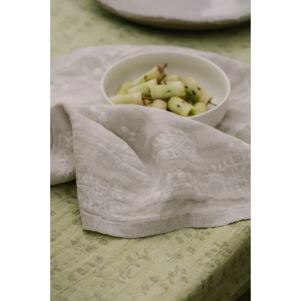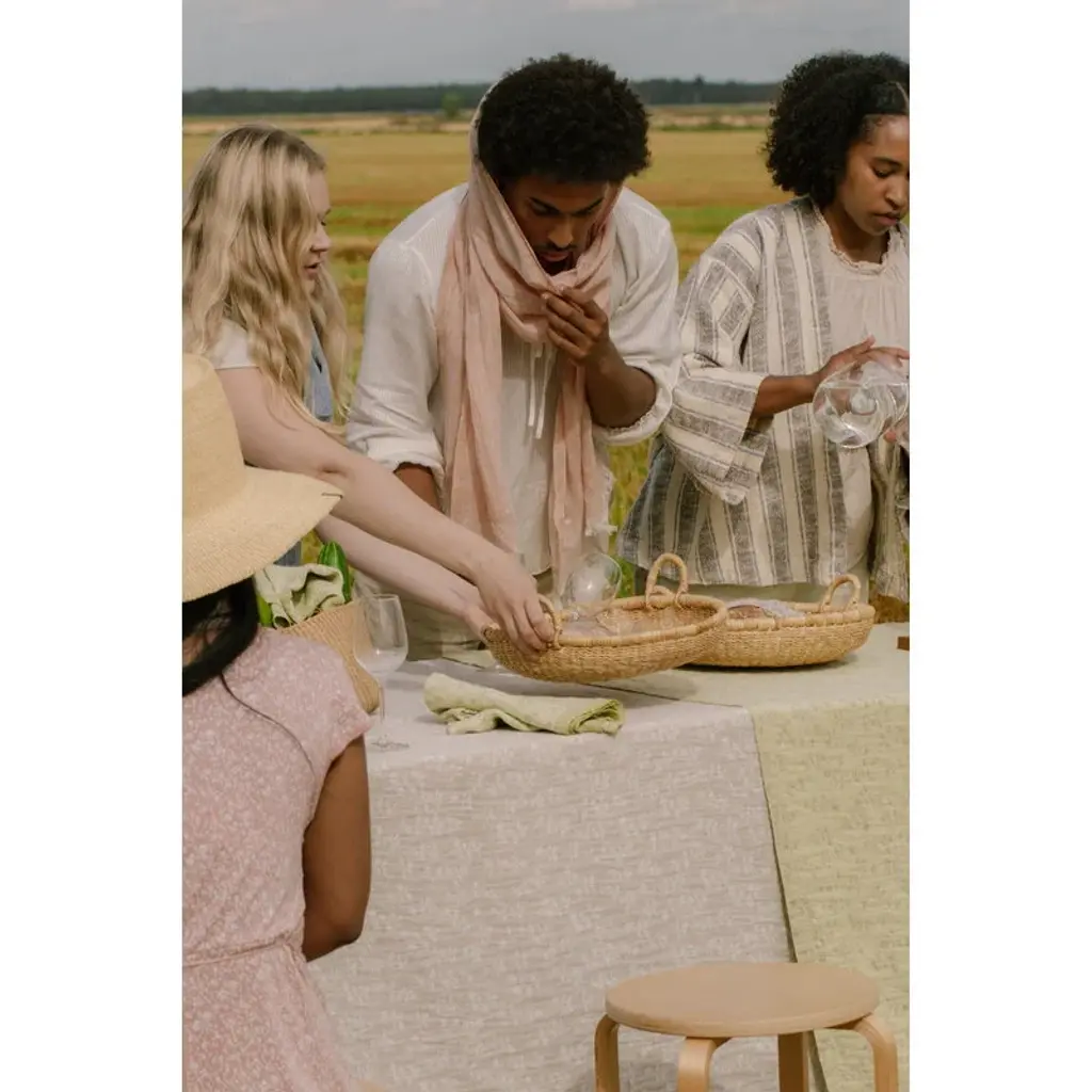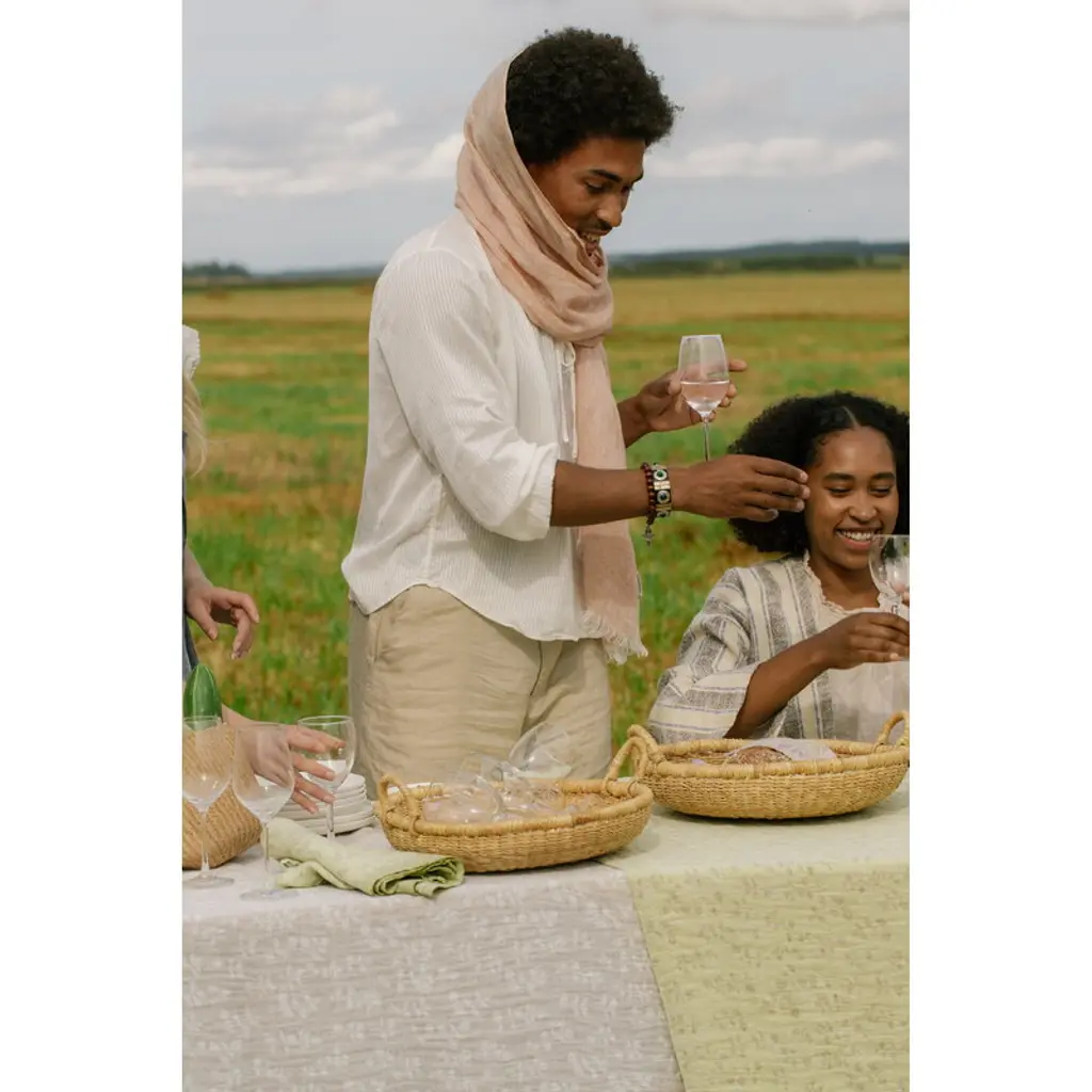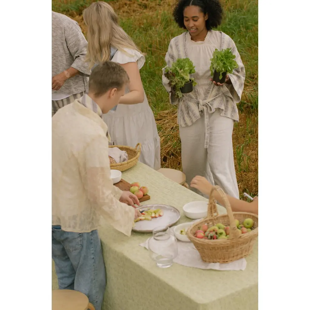The Meirami tablecloth by Lapuan Kankurit brings a charming touch to any table setting. Elina Helenius drew inspiration for this tablecloth from potted herbs that may be small in size, yet growing wild and lively across the linen surface. The versatile linen cloth finishes the look of a table setting as a beautiful tablecloth but also serves as a thin throw on hot nights, a picnic blanket in the park on summer days or even as a lightweight curtain on a window. The Meirami tablecloth is made of washed European linen, a carefree material with a naturally laid-back appearance that is ideal for rustic modern table settings. It is not necessary to iron the linen throw – small wrinkles and creases give it a relaxed, natural look. However, if you prefer a neater style, you can iron the tablecloth with linen adjustments. The Meirami throw is woven at the Lapuan Kankurit weaving mill in Finland.
