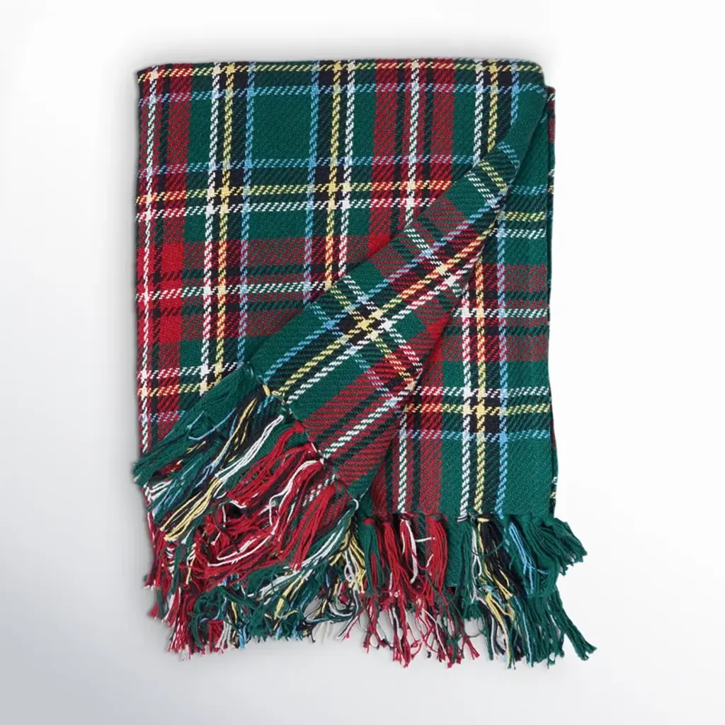 Merino Lambswool Throw In A Traditional Black Watch Tartan Plaid Pattern- Made In England