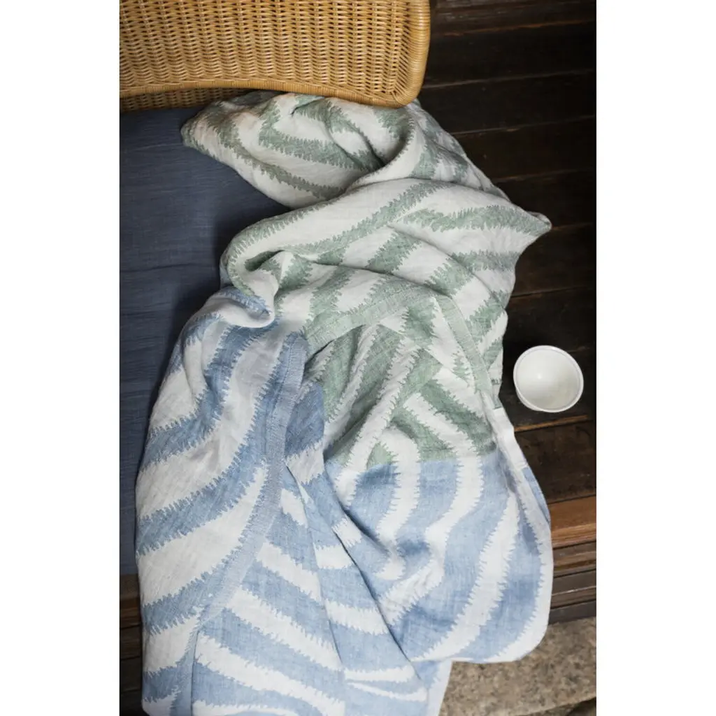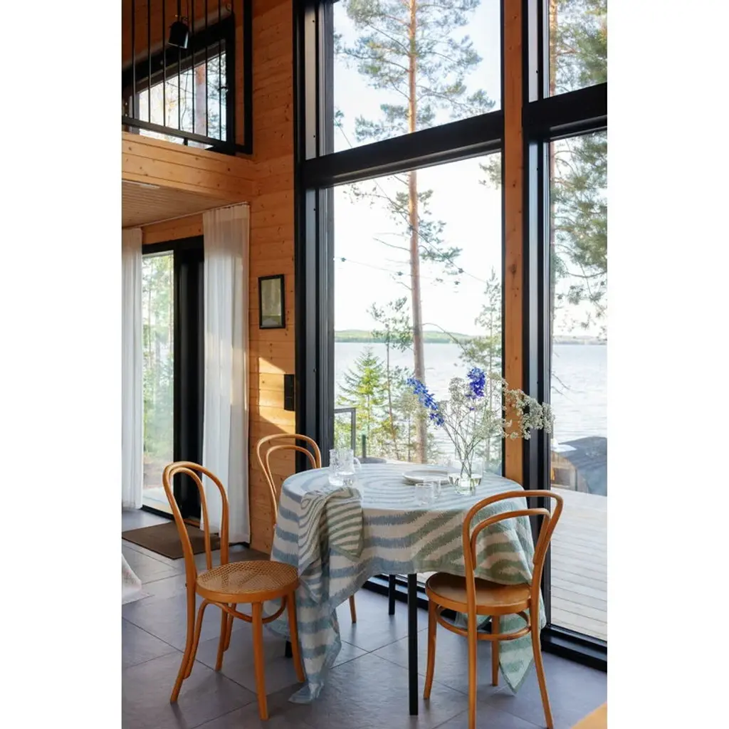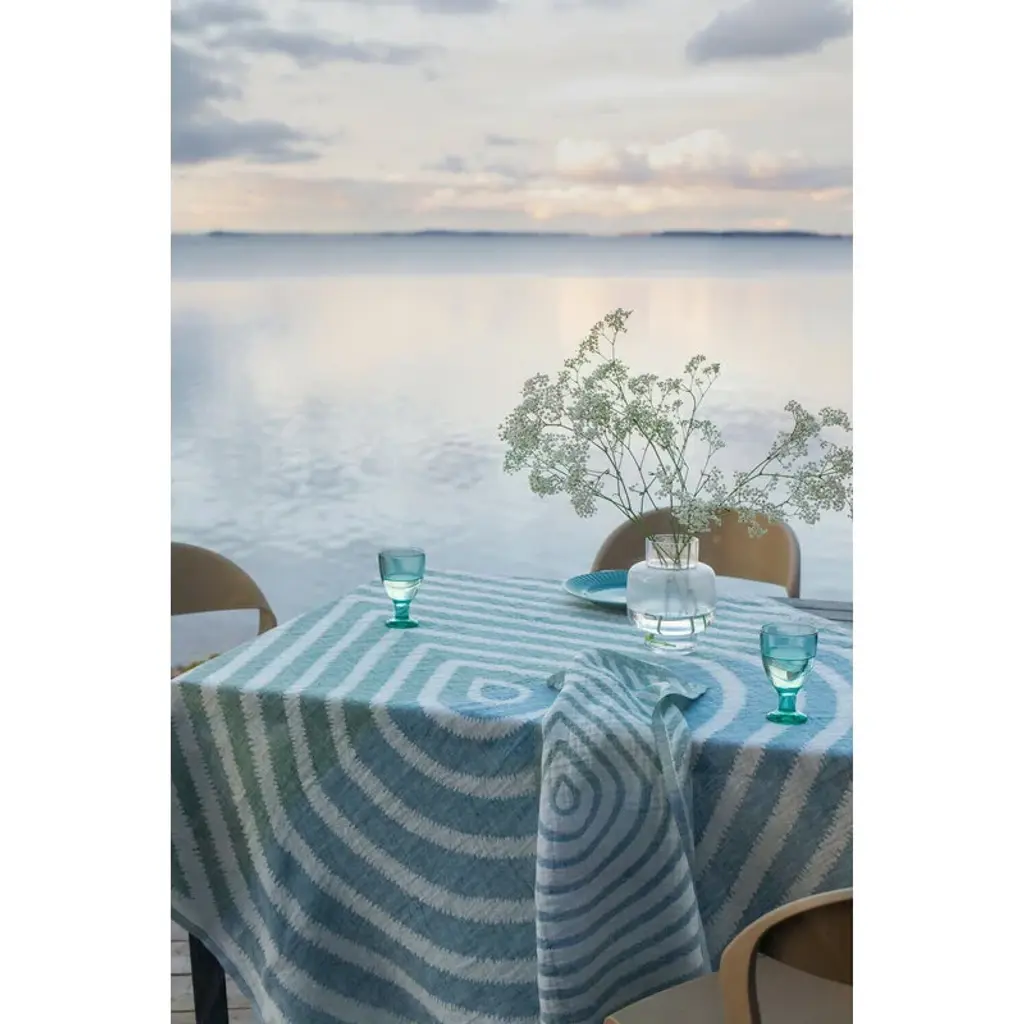 The Metsälampi table cloth by Lapuan Kankurit is decorated with a delicate Metsälampi pattern, designed by Akira Minagawa. The charming pattern takes you back to nature and the disappearing shapes in the water of the pond – the name "Metsälampi" means forest pond in English. The multifunctional linen cloth completes the look of table settings as a beautiful tablecloth but also works as a thin blanket in the summer heat, a curtain at the window or a picnic mat in the park. The Metsälampi cloth is made in Finland of washed European linen, a carefree material with a naturally laid-back appearance. It is not necessary to iron the throw – small wrinkles and creases only give it a charming relaxed, natural look.