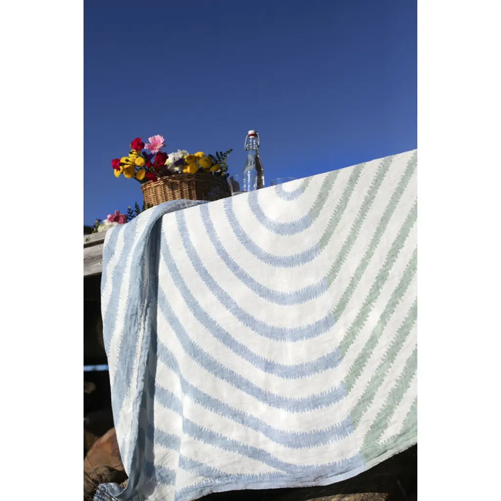 Metsälampi Table Cloth/throw, 145 X 200 Cm, White - Green - Blue