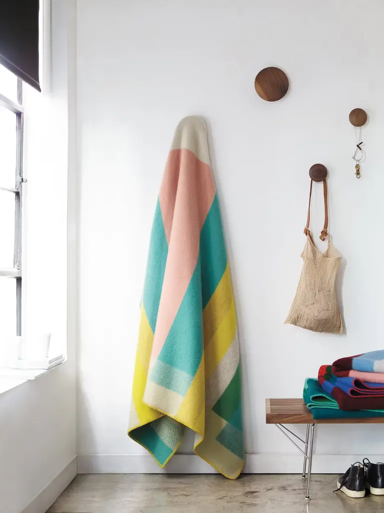 Kristine Five Melvær investigates and bridges the disciplines of product design and graphic design, focusing on realizing communicative potential of different objects and materials as a means to create emotional bonds with users. Simple yet sensuous, her Mikkel Throw (2015) is the result of inspiration from the Bauhaus movement and traditional Norwegian weaving. It's crafted from boldly colored heavy wool that requires minimal care, produced without harsh chemicals. Made in Norway.
