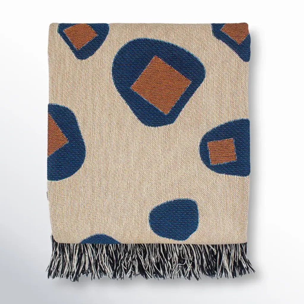 A super soft, 100% cotton blanket produced using a jacquard knit method that inverts the colors so each side of the blanket is different. Sharp, geometric forms transcend into a vivid color play, blurring the lines between color, shape and soft cotton yarn.