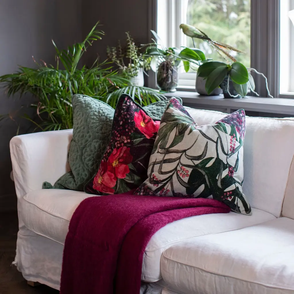 This fluffy and warm luxuriously soft throw/blanket is hand woven in a delicate mix of mohair and wool. Wrap yourself up in one and feel the soft warmth or keep it as a wonderful splash of color on your sofa or your favorite chair.