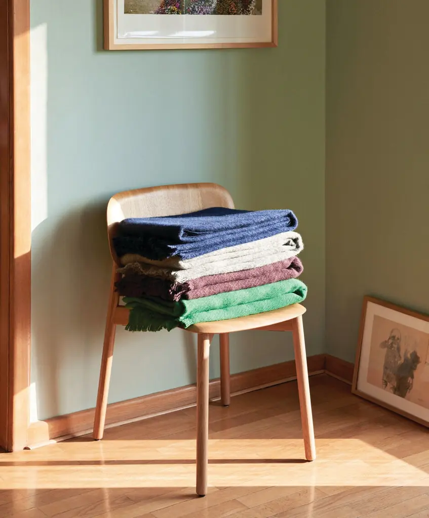 Crafted from soft pure wool, Mono Blanket features a twill structure that creates distinctive diagonal woven lines. Available in a variety of colors.