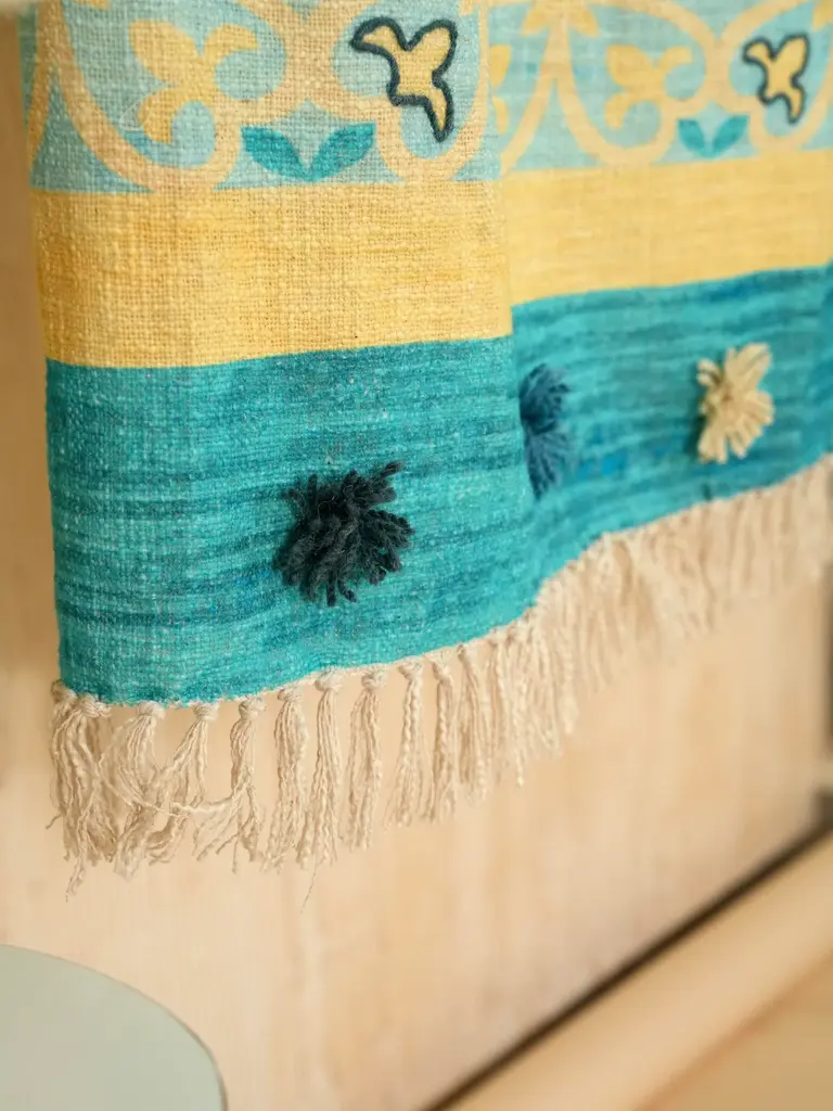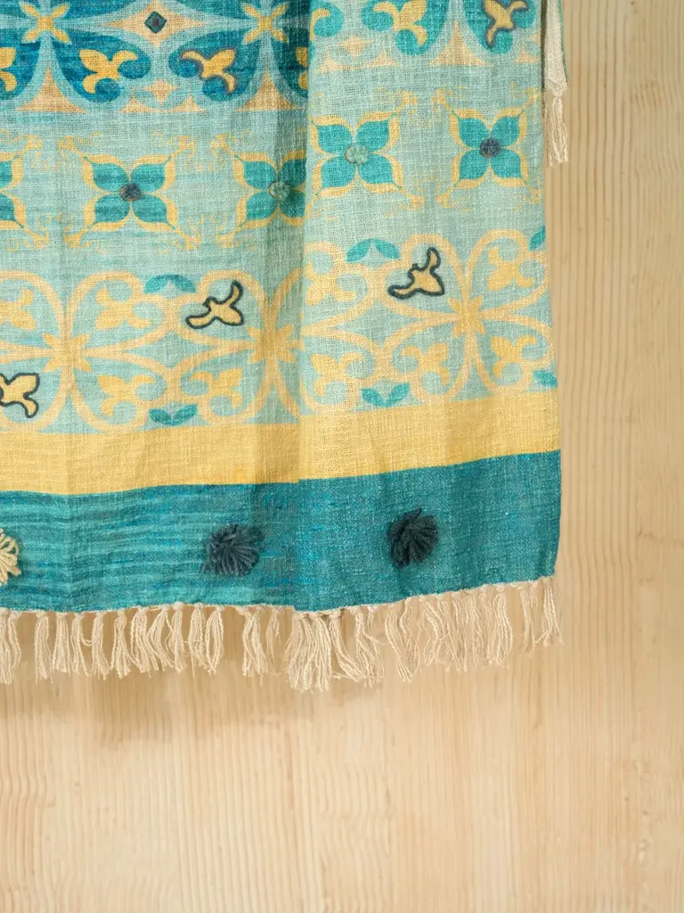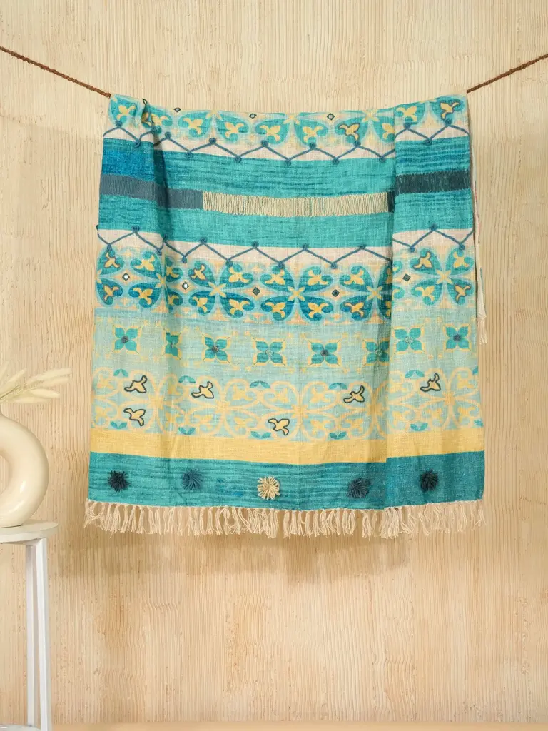 "Made from high-quality, soft materials, our MosaicBlend Embroidered Throw not only adorn your living spaces with elegance but also offer a cozy retreat during chilly evenings. Whether draped over your sofa, laid across your favorite armchair, or folded at the foot of your bed, these throws effortlessly elevate your home decor. Material: Slub Cotton " Care:- "Hand Wash Plain Wash Dry Clean / Spot clean Do not bleach Do not iron print, Do iron on the reverse Do not pull any yarn; trim with a scissor Do not rub the stain" "Please note: All of our products are meticulously handcrafted by artisans. We pay close attention to the product’s quality, appearance, and feel. However, because of the participation of humans in the manufacturing process, a little amount of variation in the product’s size, color, look, and quality is to be expected; however, this is what makes it unique. “The color of the product may vary depending on the display of your screen. Please note that there will be slight variations in appearance and designs as per the size ordered.”"