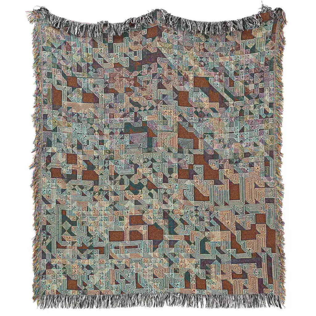 Bit Map Series 02 by Luft Tanaka Studio A multicolored and visually striking throw blanket / wall tapestry woven out of 100 % cotton yarn.60" x 80" / 152cm x 203cmReversible. Opposite side has the same design with inverted colors.The Bit Map Series is based on digital “doodles” Luft makes using Kid Pix, a bitmap drawing software created by Craig Hickman in the 80s & 90s. Throughout the 90s, Kid Pix became a computer lab sensation in primary schools around the globe. Luft too, vividly remembers his first experiences with the the software in his kindergarten classroom, and enjoys creating with the software to this day. Graphic art generated with the vintage software are edited, converted and digitally woven to make a soft and cozy blanket or wall hanging.