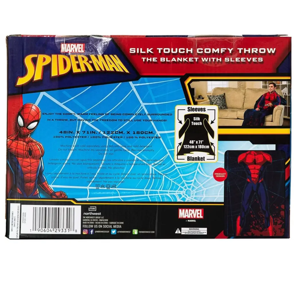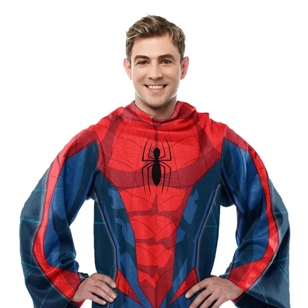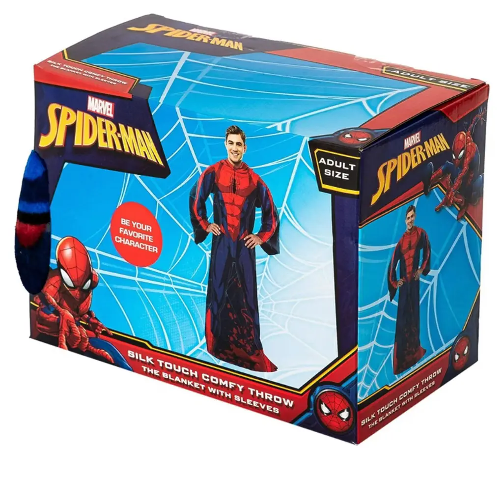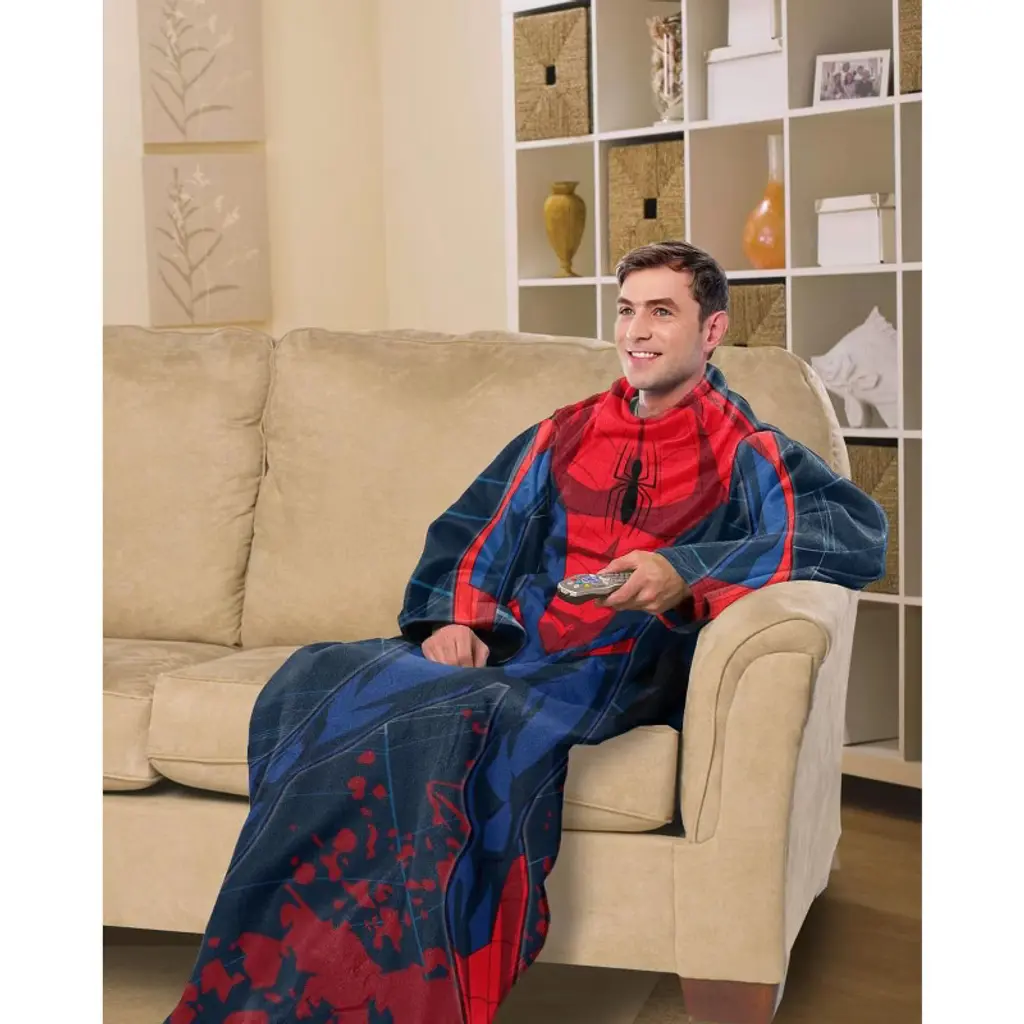 Northwest Spider-man Spidey Webs Adult Silk Touch Comfy Throw Blanket With Sleeves, 48" X 72"
