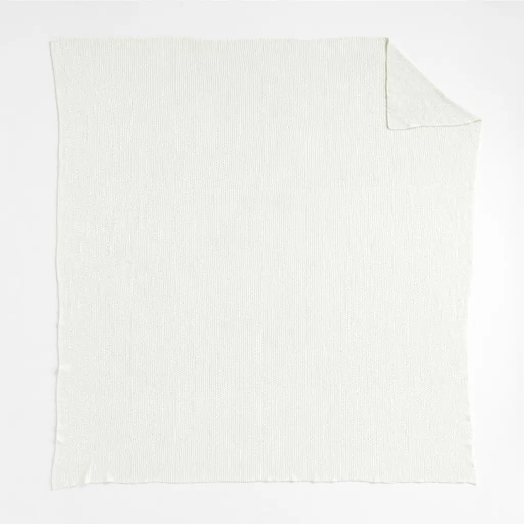 Organic Cotton 80"x80" Bright White Chunky Hand-Knit Bed Throw Blanket