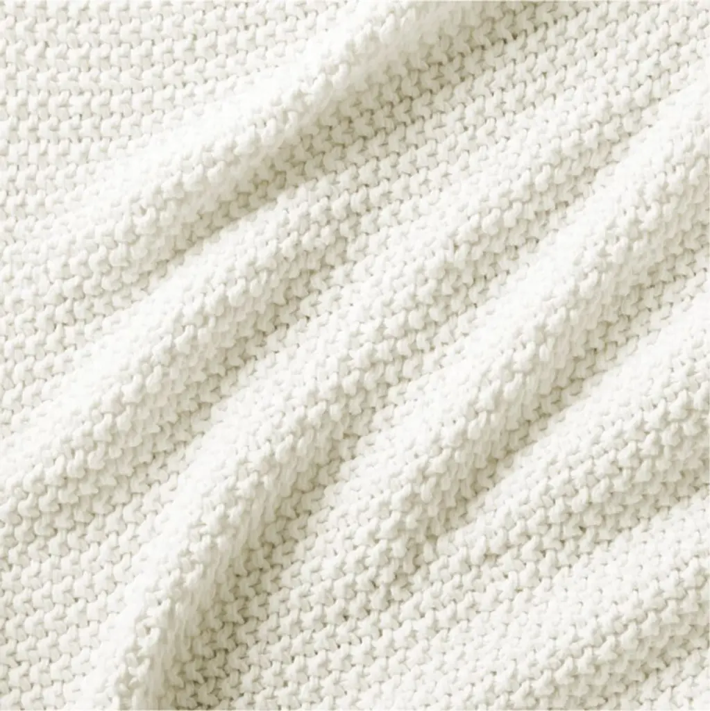 Our bright white blanket elevates a timeless classic with artisan quality and sustainable fiber. Knit by hand, each organic cotton bed blanket takes a craftsperson five to six hours to make. The result is luxuriously soft and cozy with an irresistibly chunky-yet-elegant texture. Layer the white blanket under your duvet or quilt to add warmth, or drape across your bed as a textural throw.