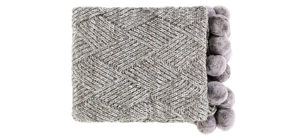 Orie Pom Pom Throw Blanket - Dark Grey/natural - 50" X 60" - Safavieh .