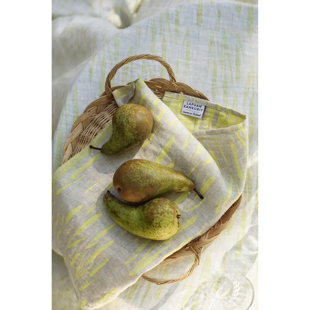 Osmankäämi tablecloth by Lapuan Kankurit is patterned with a lovely design by Elina Helenius, a tribute to the founder and first designer of Lapuan Kankurit, Liisa Hjelt. The original Osmankäämi textiles were designed back in the 1970s and woven from jacquard, but now the material is 100% linen. The versatile linen cloth completes the look of table settings as a beautiful tablecloth but also works as a thin blanket in the summer heat, a curtain at the window or a picnic mat in the park. The tablecloth has been woven in Finland at the own weaving mill of Lapuan Kankurit.