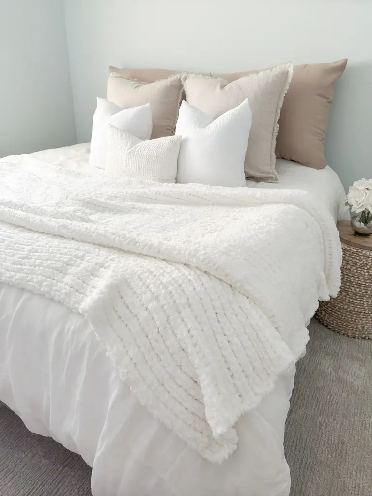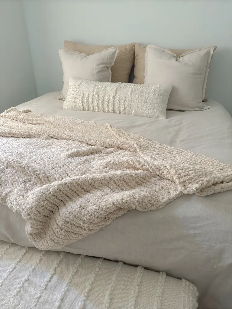 Experience ultimate coziness with our Oversized Plush Chenille Sweater Throw. Perfect for keeping you warm and comfortable, it’s a must-have for relaxation. Colors: Bright White, Sandy Beige, Dusk Taupe, Charcoal Grey Dimensions: 70" x 85" Material: Chenille, 100% Polyester Care: Machine wash delicate with like colors, Tumble Dry low. Imported.
