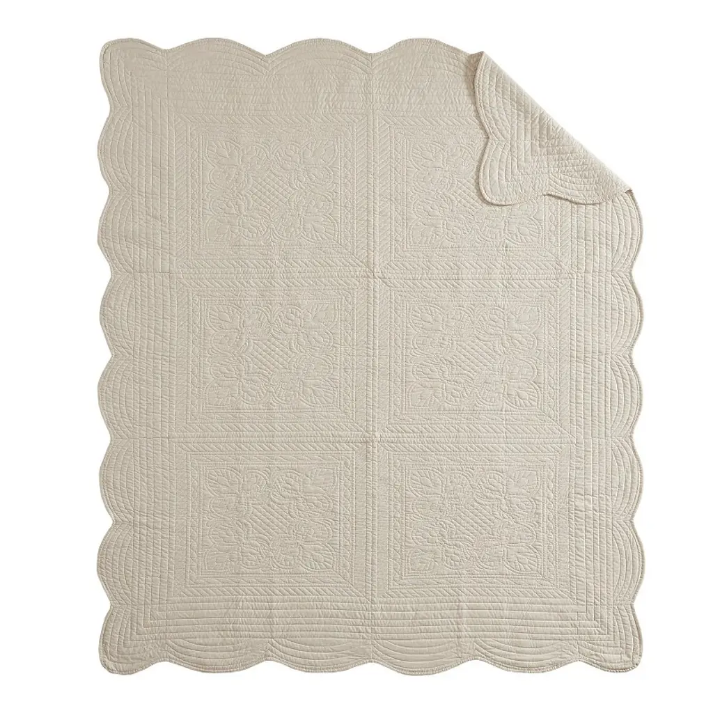 Oversized Quilted Throw With Scalloped Edges Cream 60x72in